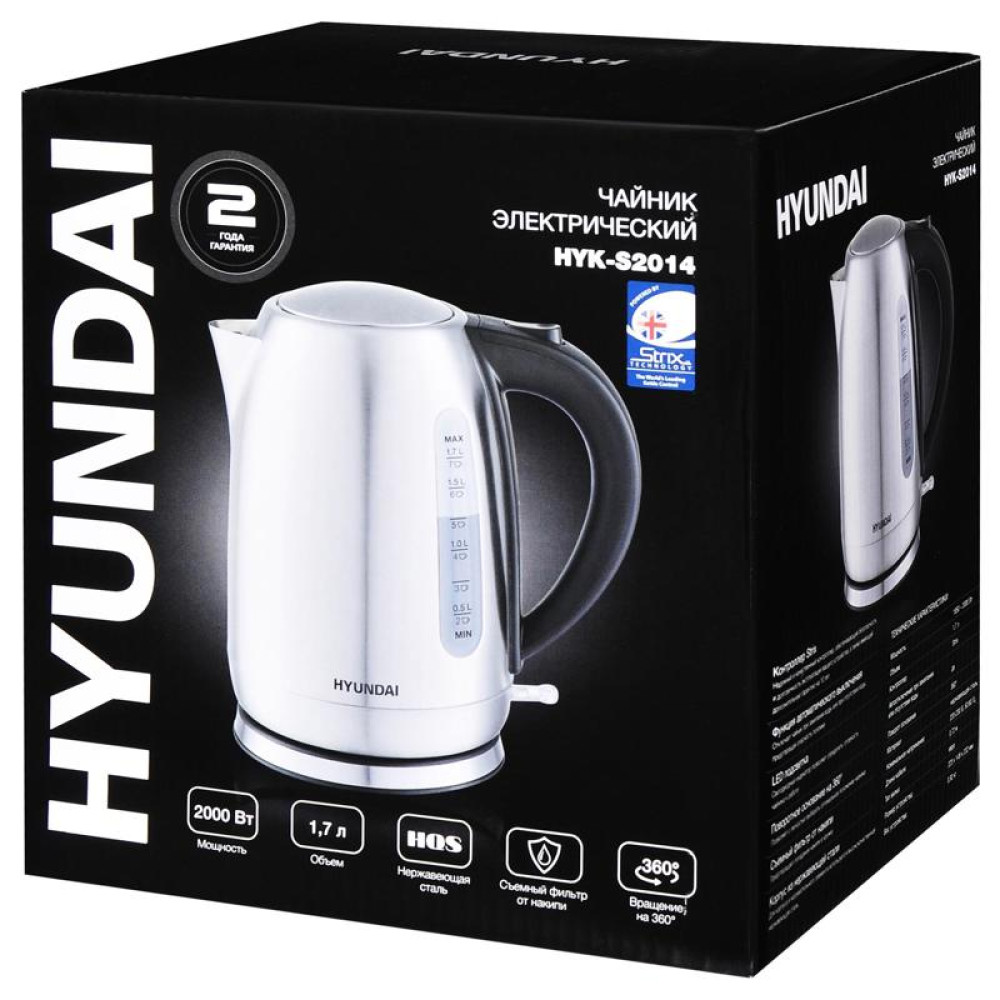 Чайник электрический Hyundai HYK-S2014 1.7л. 2000Вт серебристый/черный корпус: металл