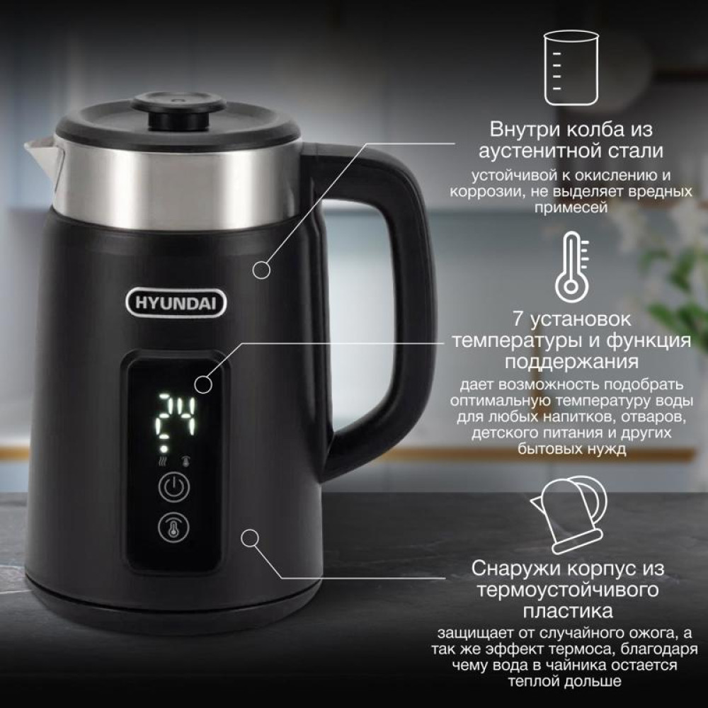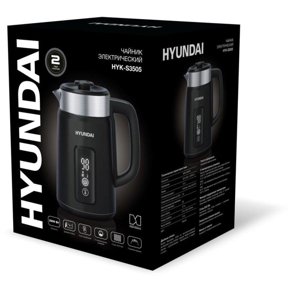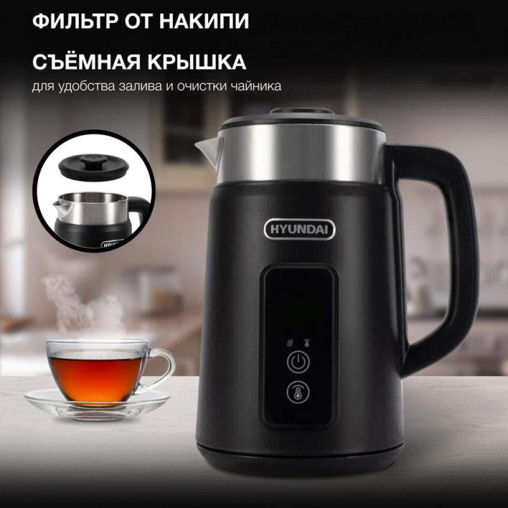 Чайник электрический Hyundai HYK-S3505 1.5л. 2200Вт черный корпус: металл/пластик