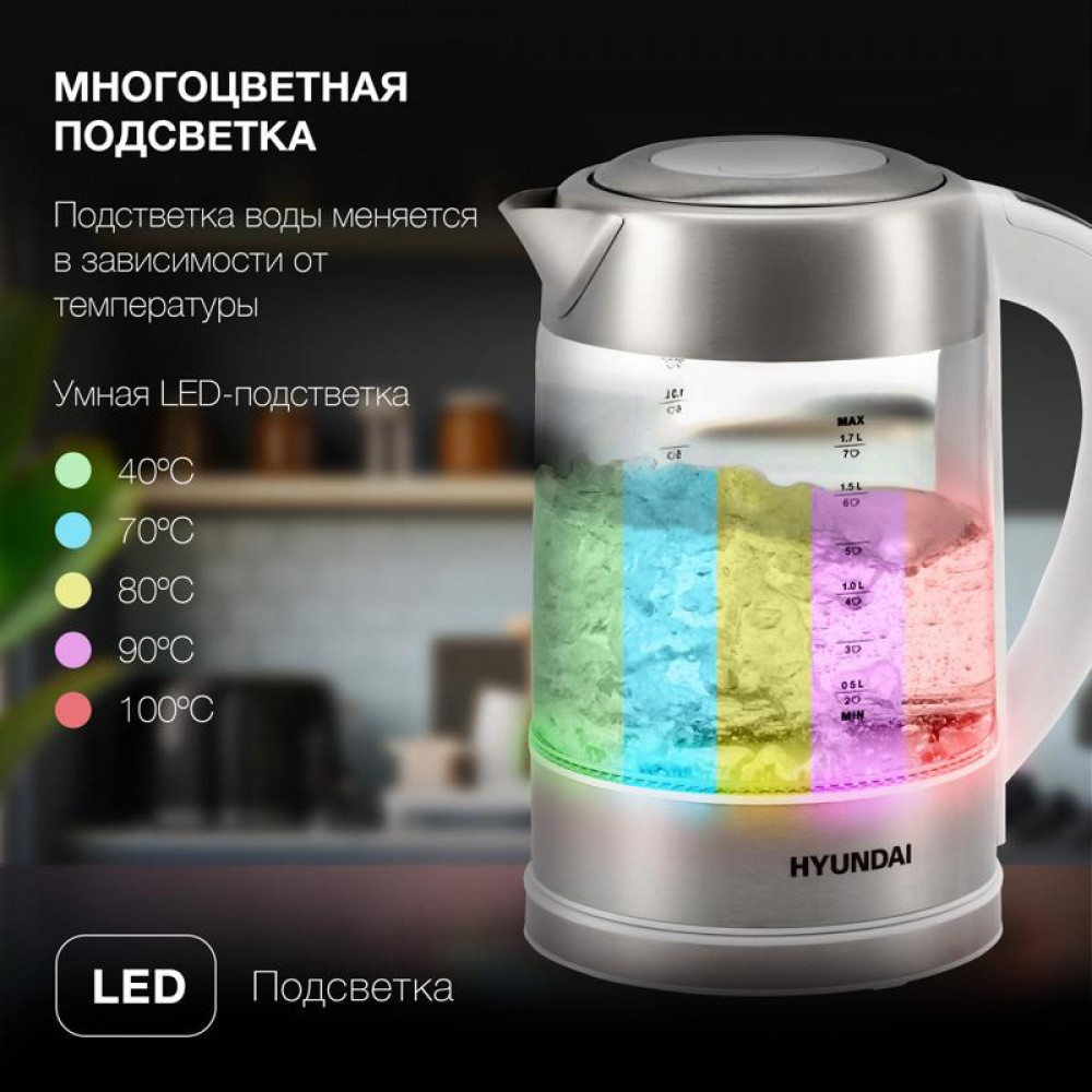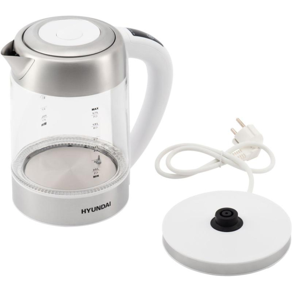 Чайник электрический Hyundai HYK-S5807 1.7л. 2200Вт белый/серебристый корпус: стекло/металл