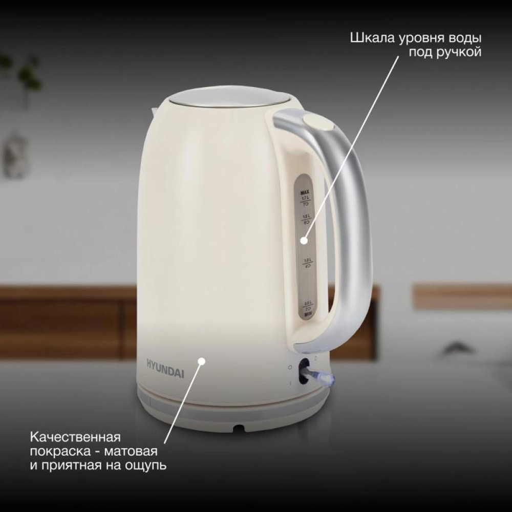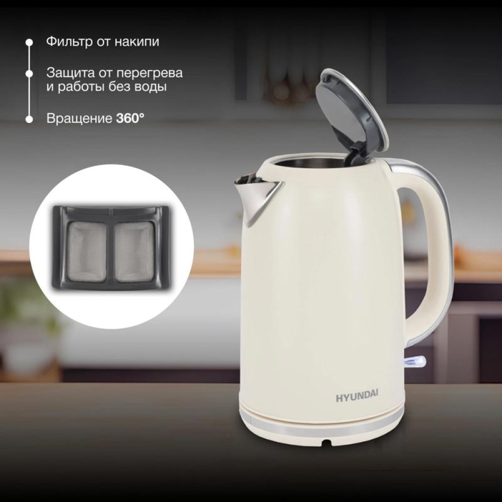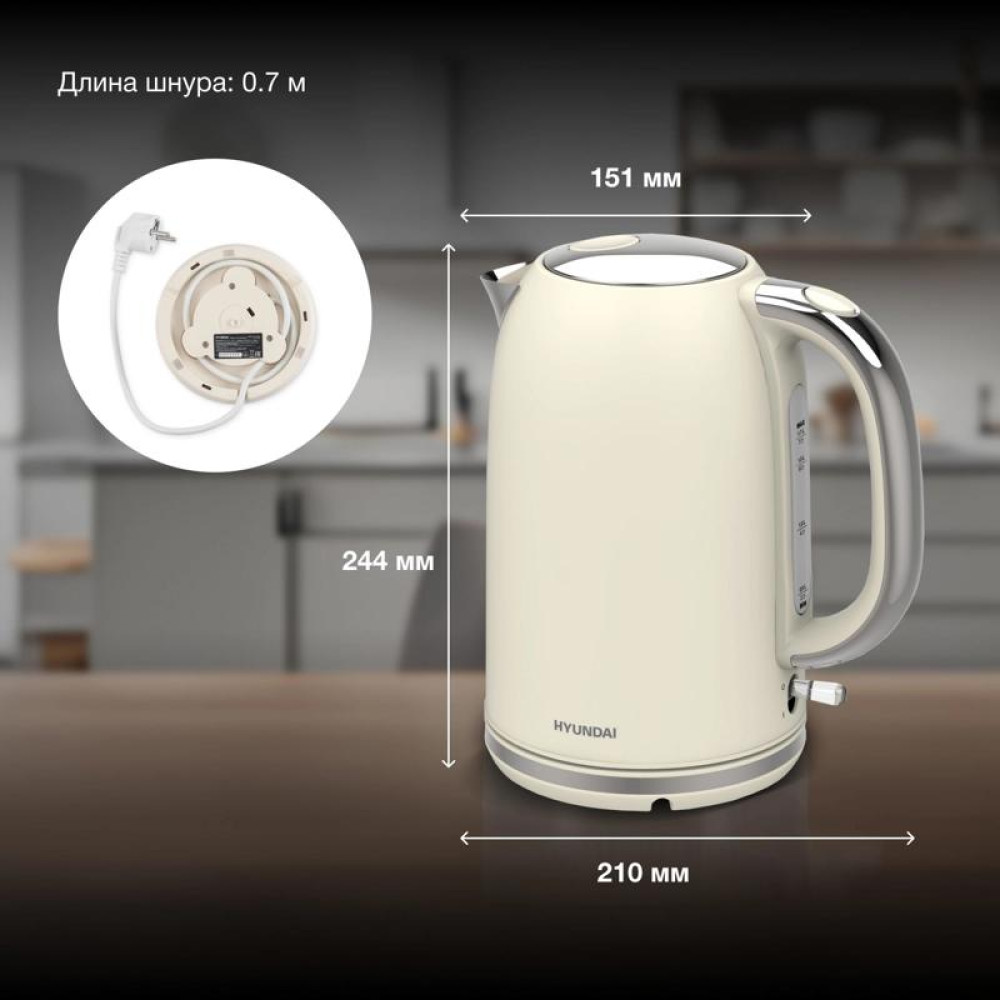 Чайник электрический Hyundai HYK-S9900 1.7л. 2200Вт молочный/серебристый корпус: металл