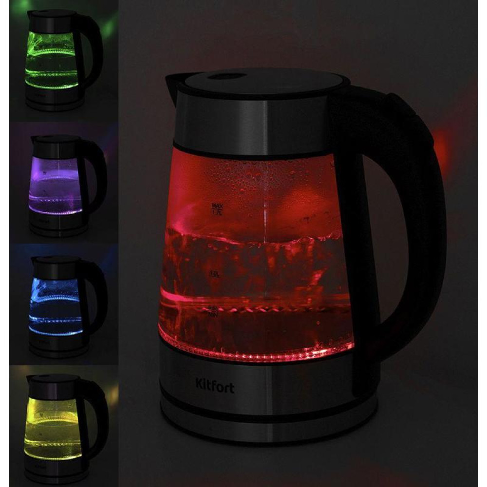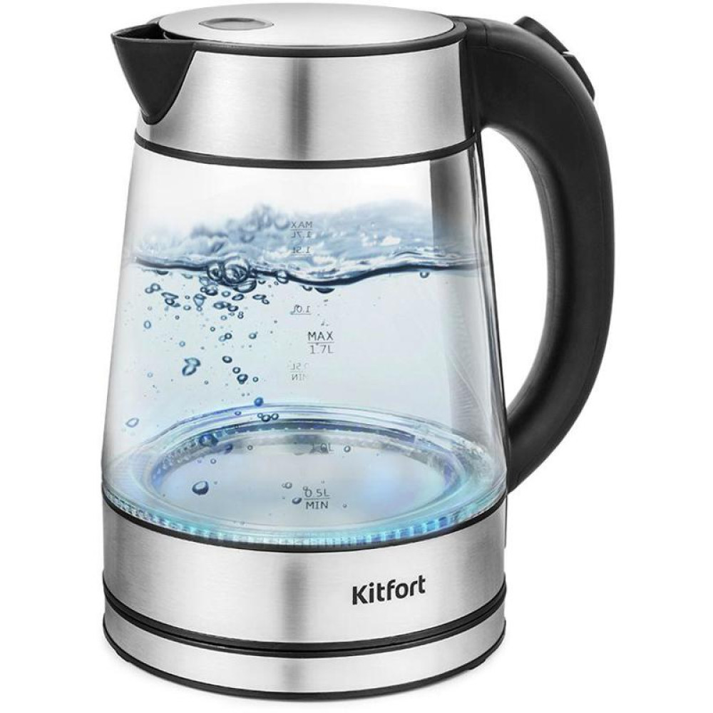 Чайник электрический Kitfort КТ-6105 1.7л. 2200Вт нержавеющая сталь/черный корпус: стекло/металл/пластик