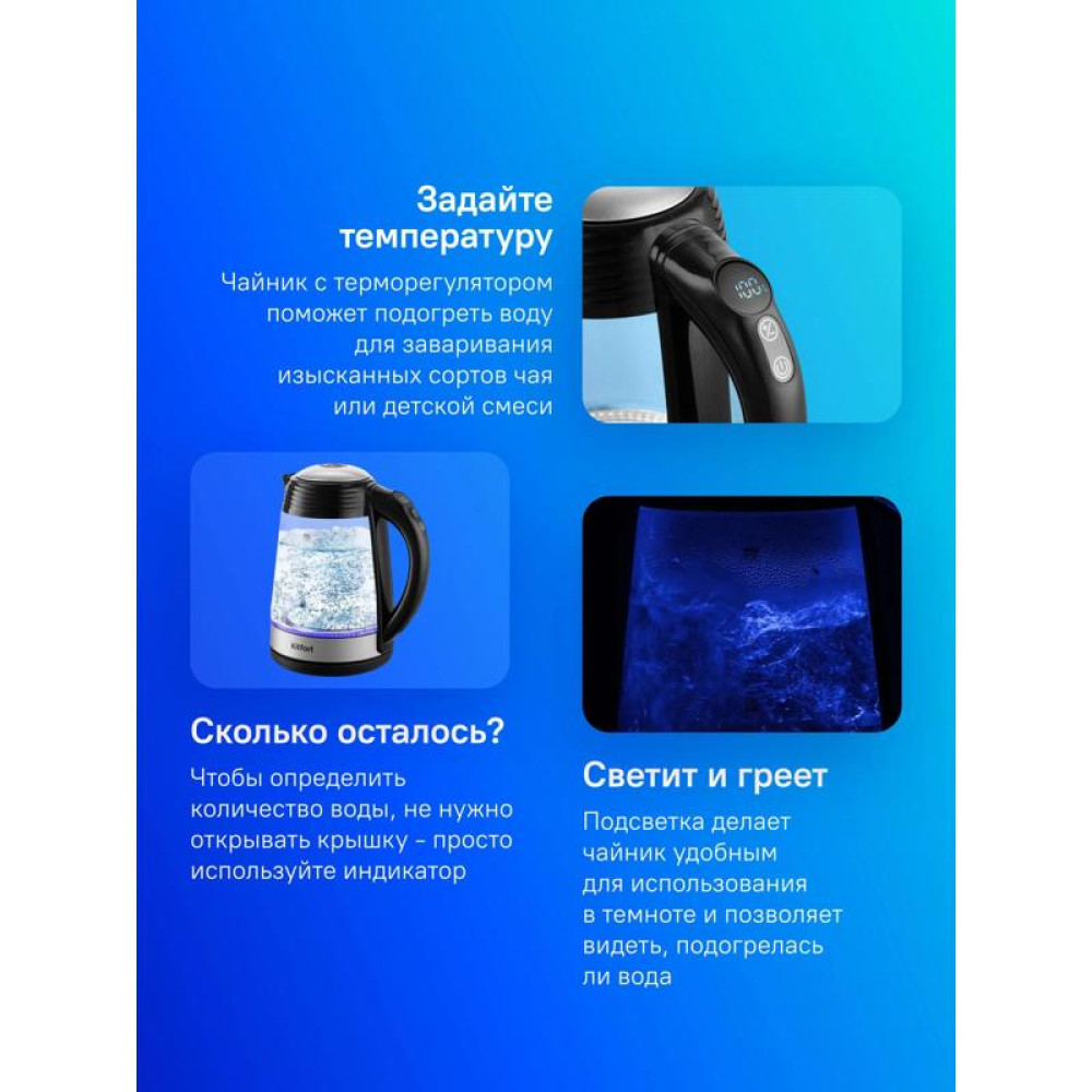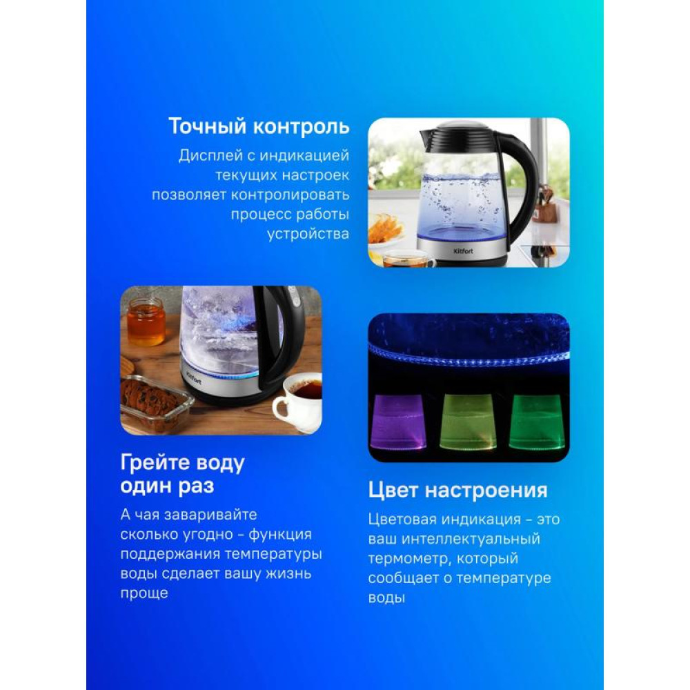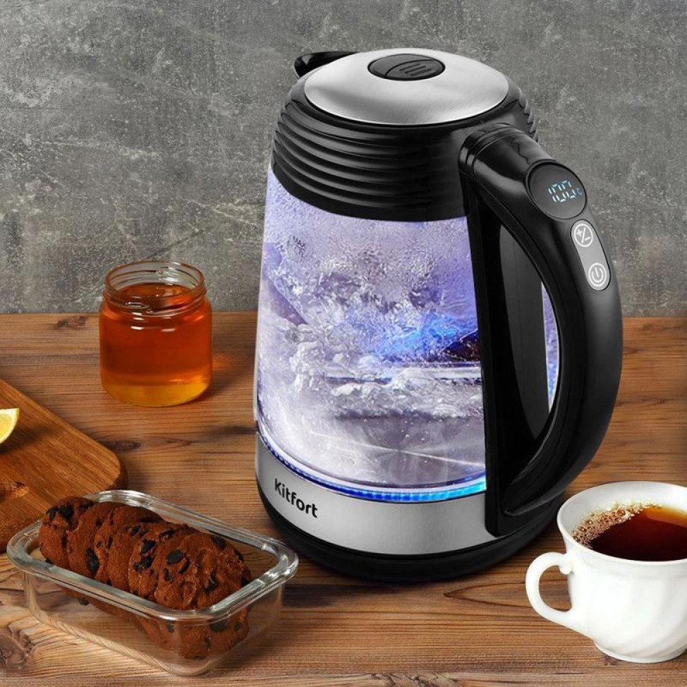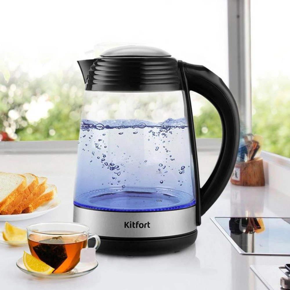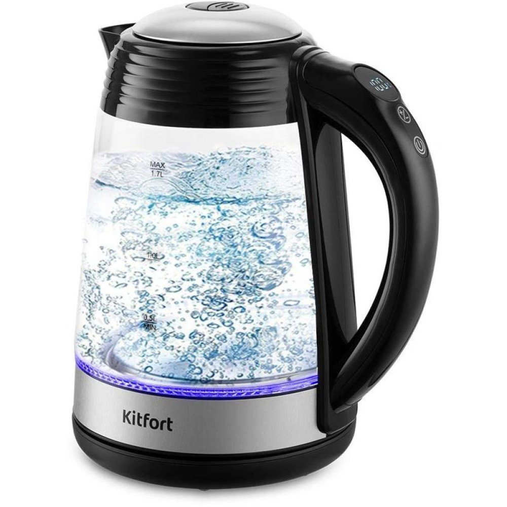 Чайник электрический Kitfort КТ-6126 1.7л. 2200Вт черный/нержавеющая сталь корпус: стекло/пластик
