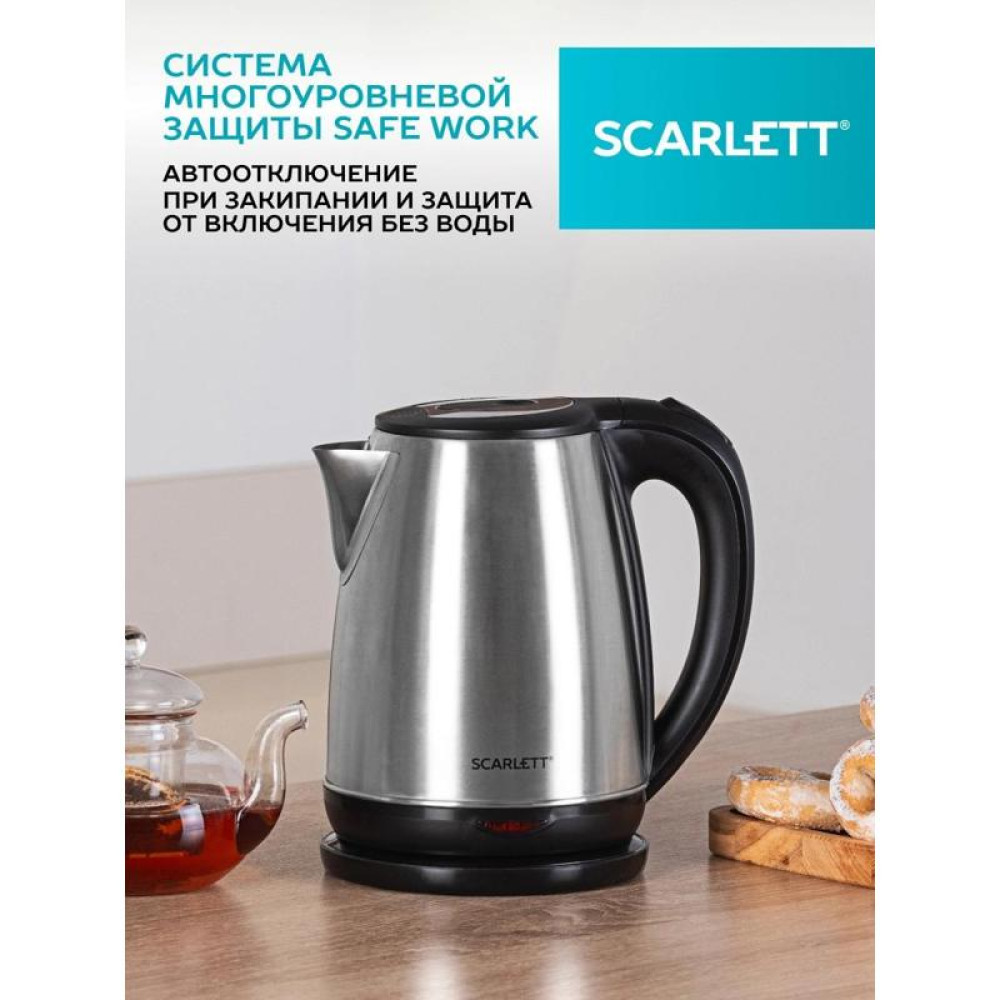 Чайник электрический Scarlett SC-EK21S34 1.8л. 2200Вт черный корпус: сталь