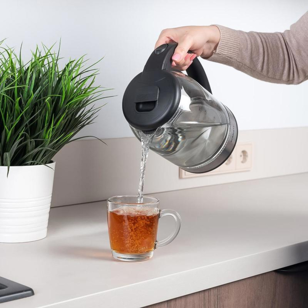 Чайник электрический Scarlett SC-EK27G10 1.7л. 1800Вт прозрачный/черный корпус: стекло/пластик