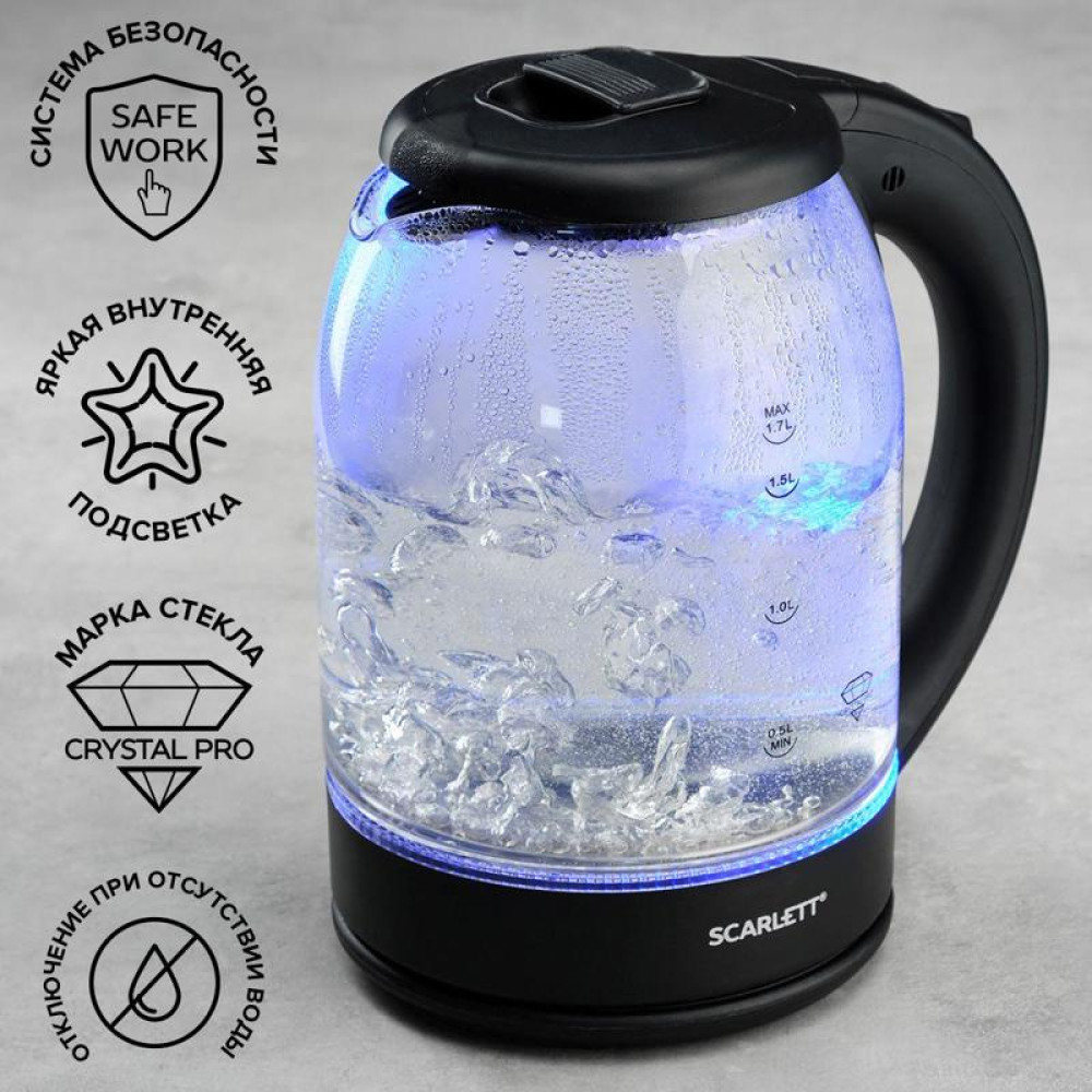Чайник электрический Scarlett SC-EK27G90 1.7л. 1800Вт черный корпус: стекло