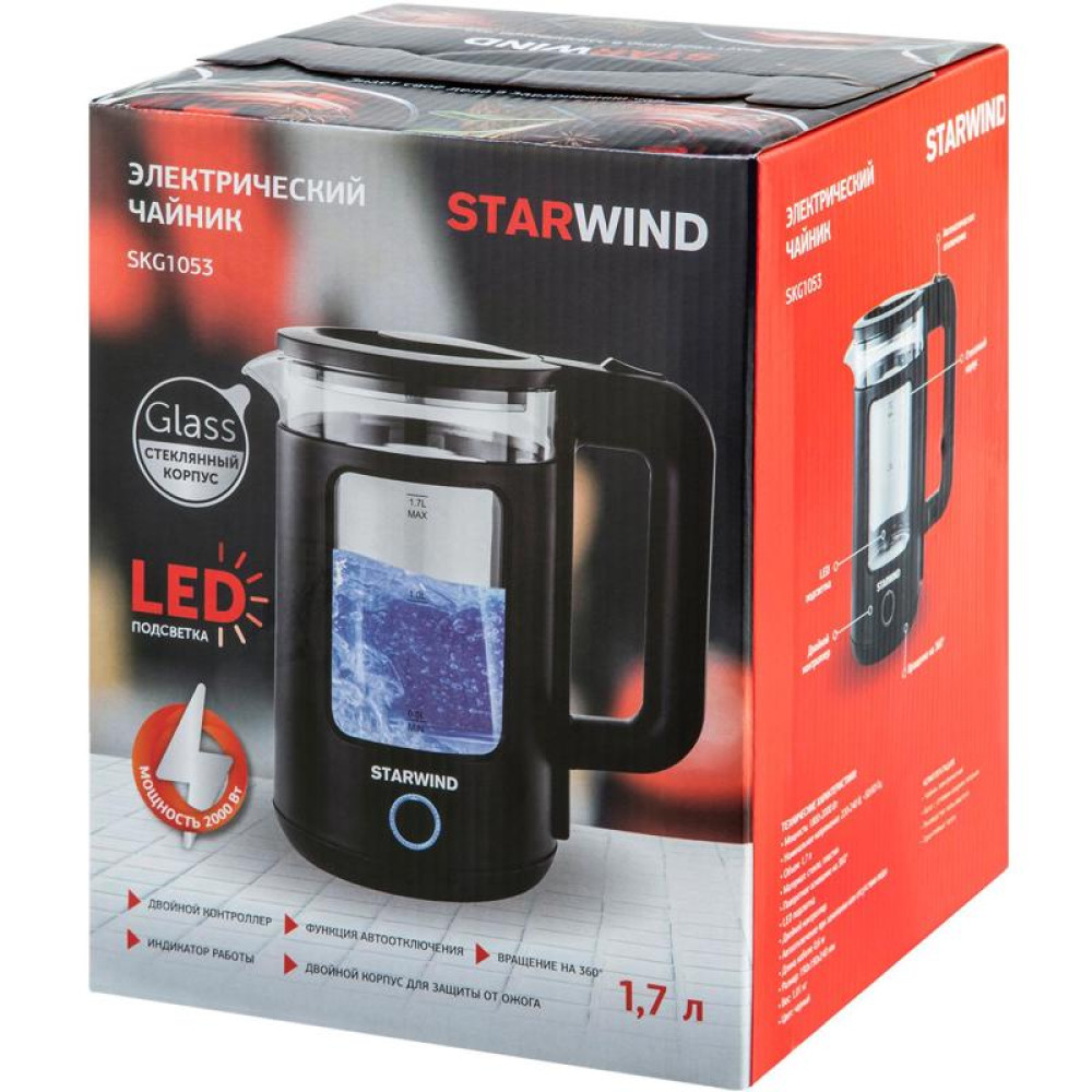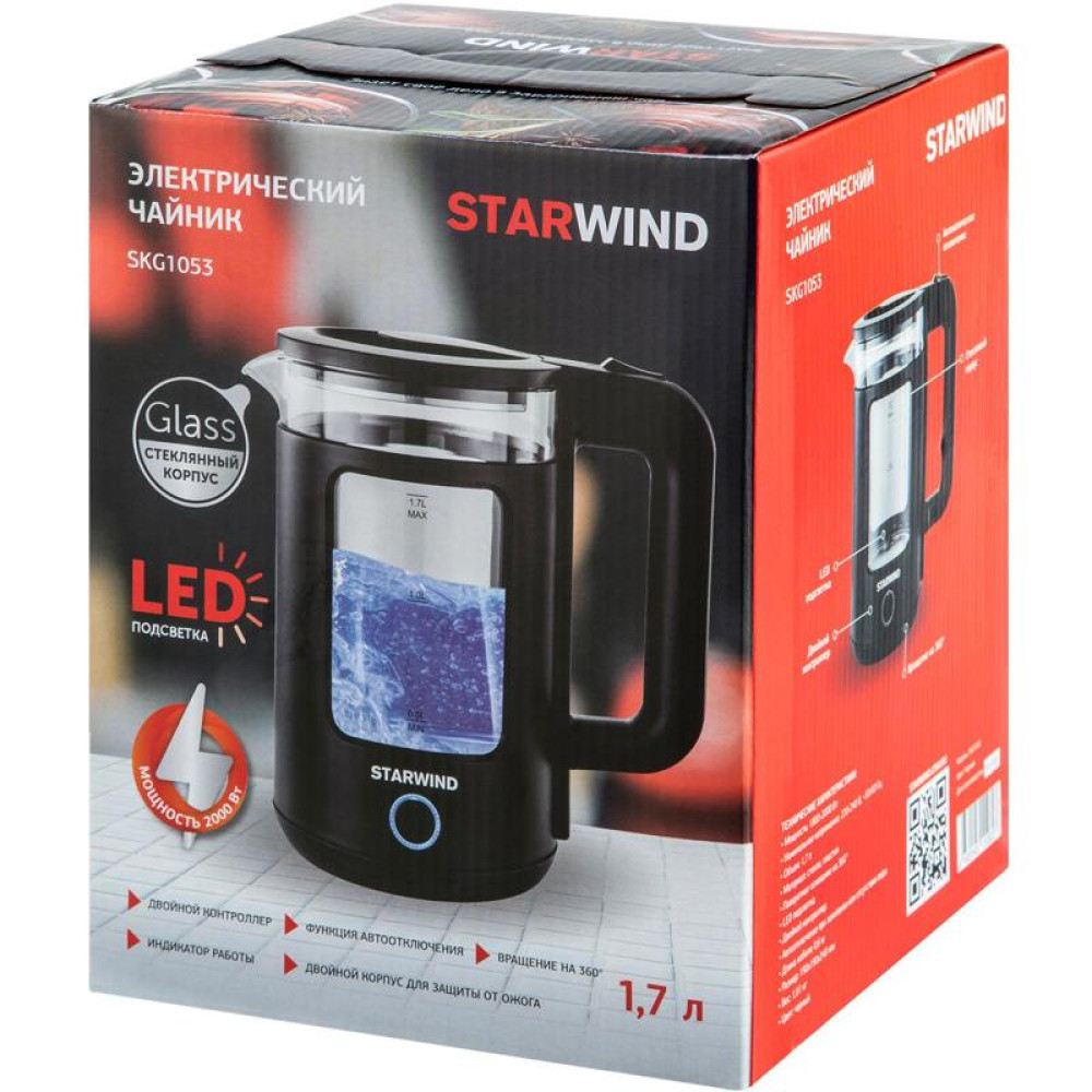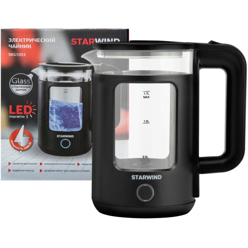Чайник электрический Starwind SKG1053 1.7л. 1800Вт черный корпус: стекло