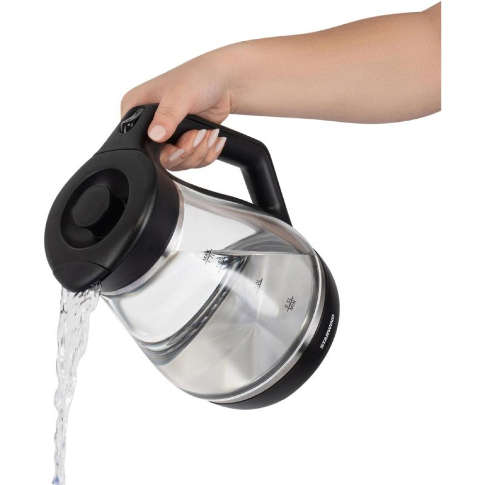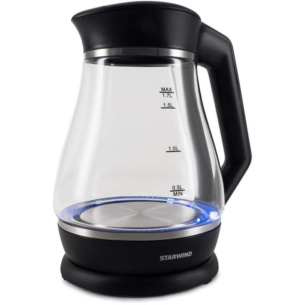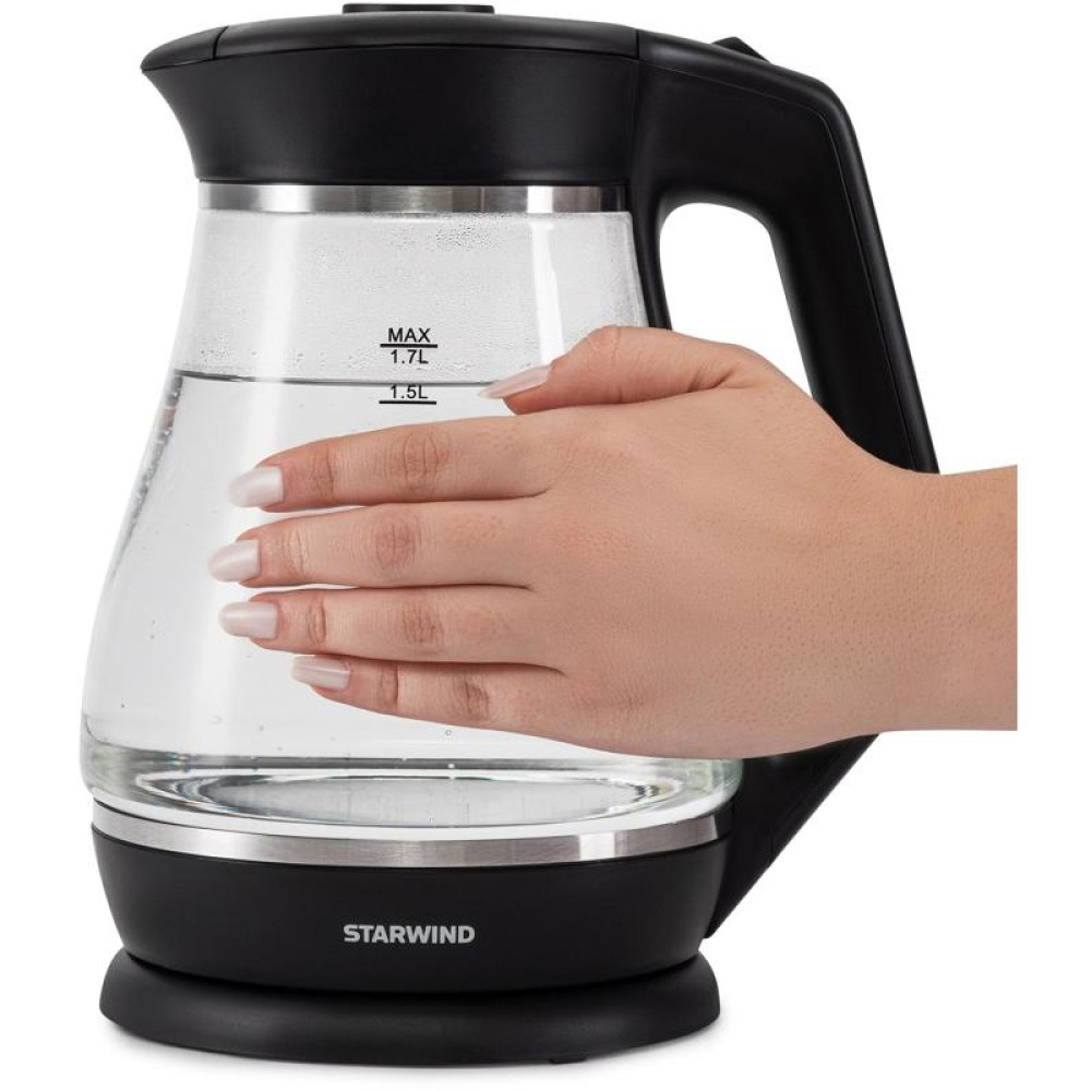 Чайник электрический Starwind SKS2035 1.7л. 2200Вт черный корпус: стекло/пластик