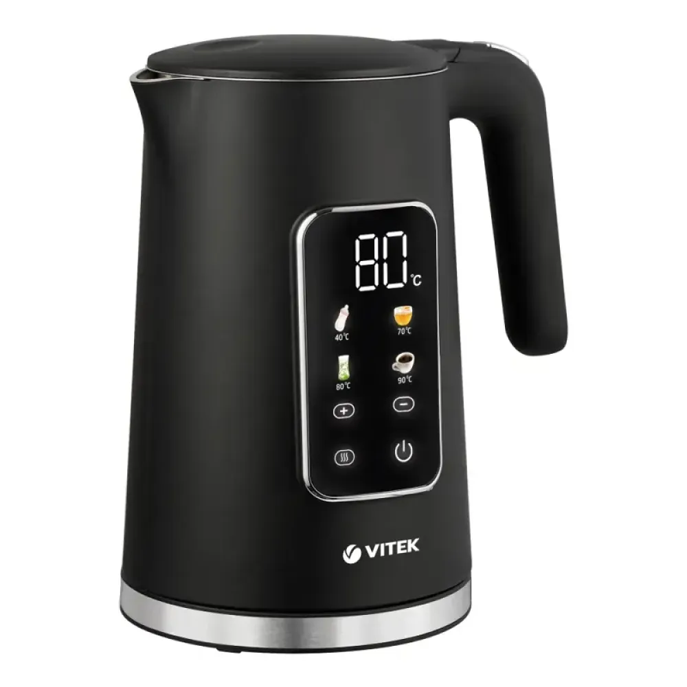 Чайник Vitek VT-1162: Удобство приготовления напитковVitek VT-1162 — это чайник с современным дизайном и практичными функциями. Бытовой прибор предлагает 13 температурных режимов, позволяя нагревать воду от 40 до 100°C, что делает его подходящим для заваривания различных чаев и приготовления кофе.Конструкция:- Теплоизолированный корпус: Внешняя пластиковая оболочка защищена термостойким материалом, предотвращающим ожоги. Внутренний корпус из нержавеющей стали 304 не впитывает и не выделяет примесей, обеспечивая безопасность. - Вращающаяся подставка: Подставка на 360 градусов позволяет удобно размещать чайник на столе.- Скрытый нагревательный элемент: Обеспечивает безопасность и легкость в уходе за устройством.Характеристики:- Вместимость 1.7 литра для приготовления напитков на нескольких человек.- Мощность 2200 Вт обеспечивает быстрый нагрев воды.- Звуковой сигнал и индикатор уровня воды делают процесс использования удобным.Функции:- Регулировка температуры: Подходит для заваривания чая, приготовления кофе или детского питания.- Автоматическое отключение: Гарантирует безопасность и экономию энергии.Дизайн:Чёрный корпус из металла и пластика делает Vitek VT-1162 стильным элементом кухни. Индикаторы работы показывают текущий режим чайника.