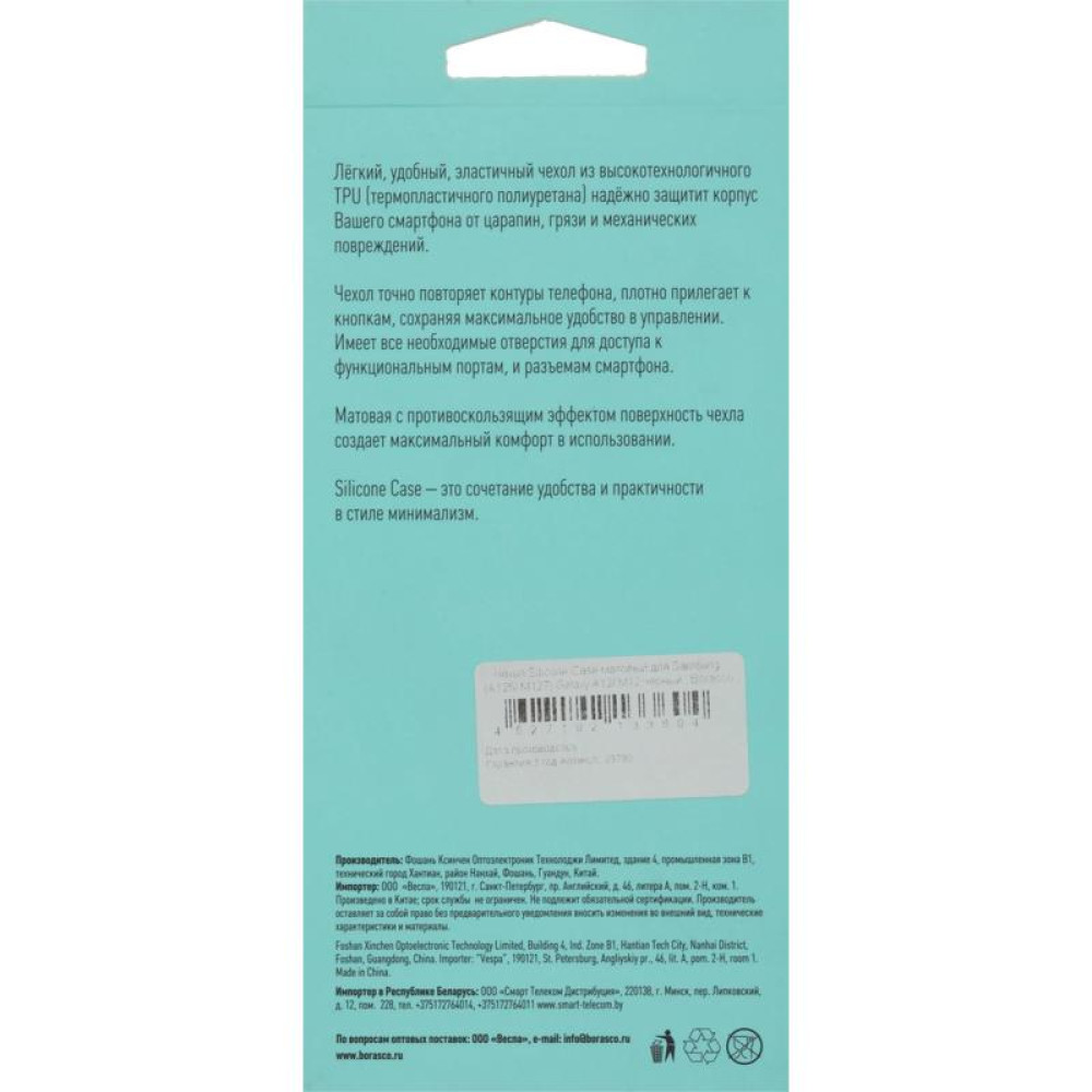 Чехол (клип-кейс) BoraSCO для Samsung Galaxy A12 Silicone Case черный (матовый) (39790)