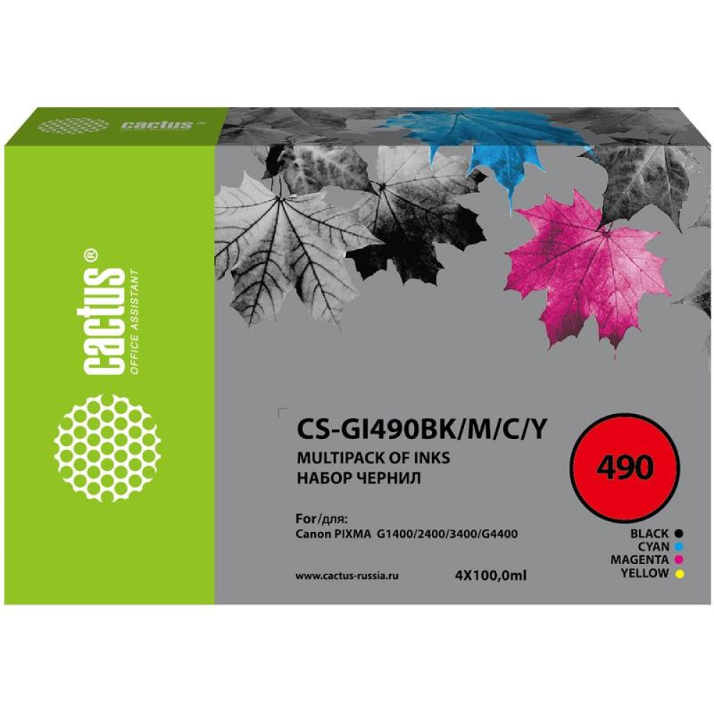 Чернила Cactus CS-GI490BK/M/C/Y GI-490 многоцветный набор 4x100мл для Canon Pixma G1400/G2400/G3400