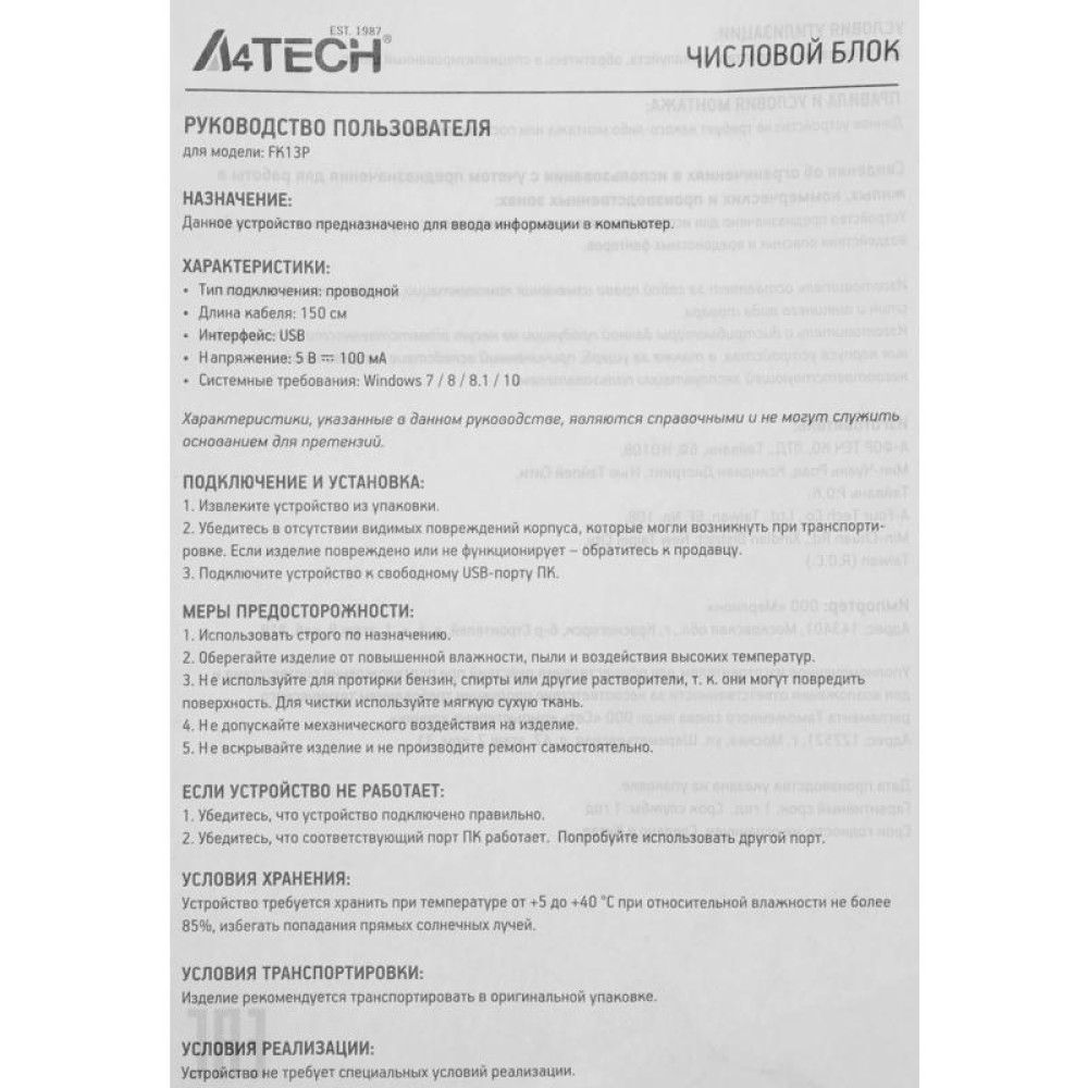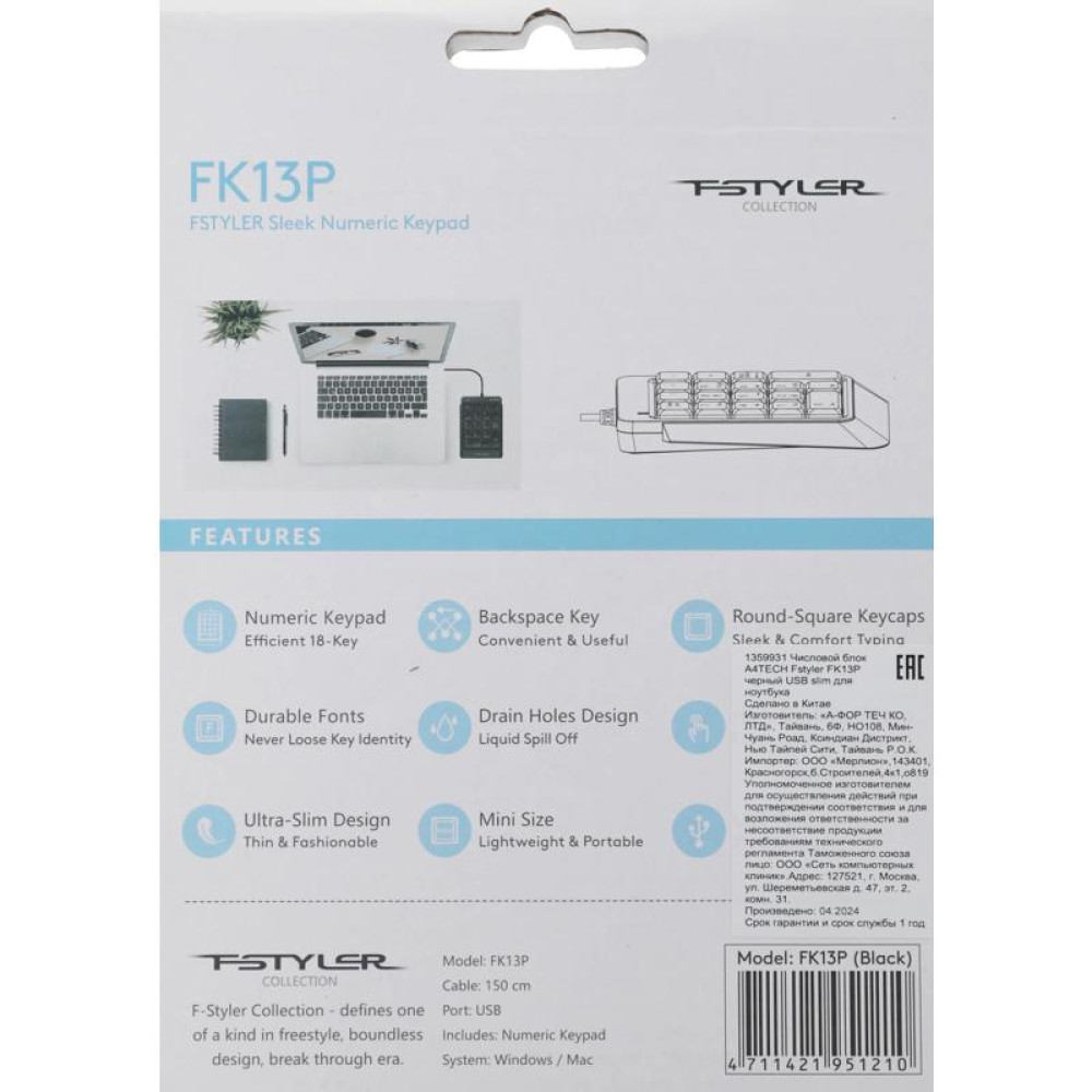 Числовой блок A4Tech Fstyler FK13P черный USB slim для ноутбука (FK13P BLACK)
