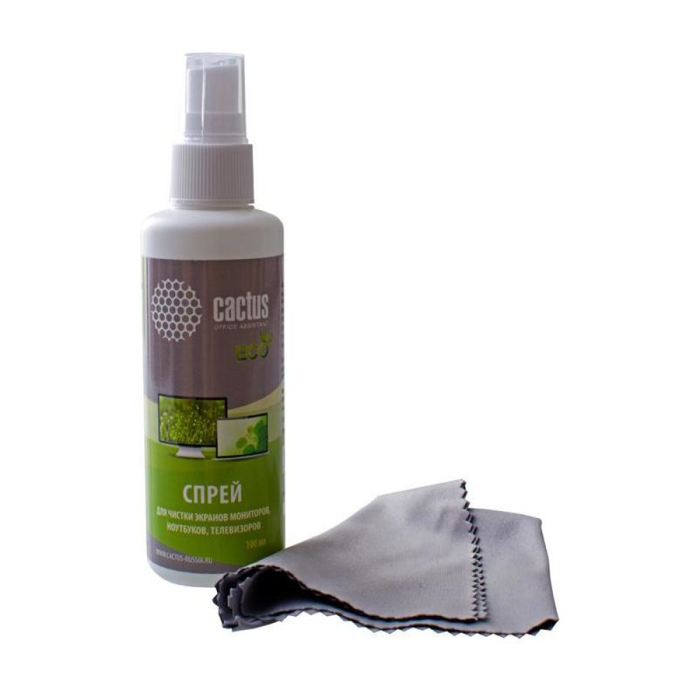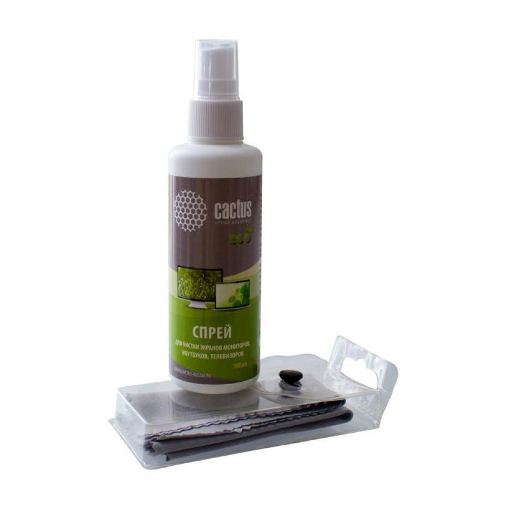 Чистящий набор (салфетки + спрей) Cactus CS-S3001E для экранов и оптики 1шт 18x18см 100мл