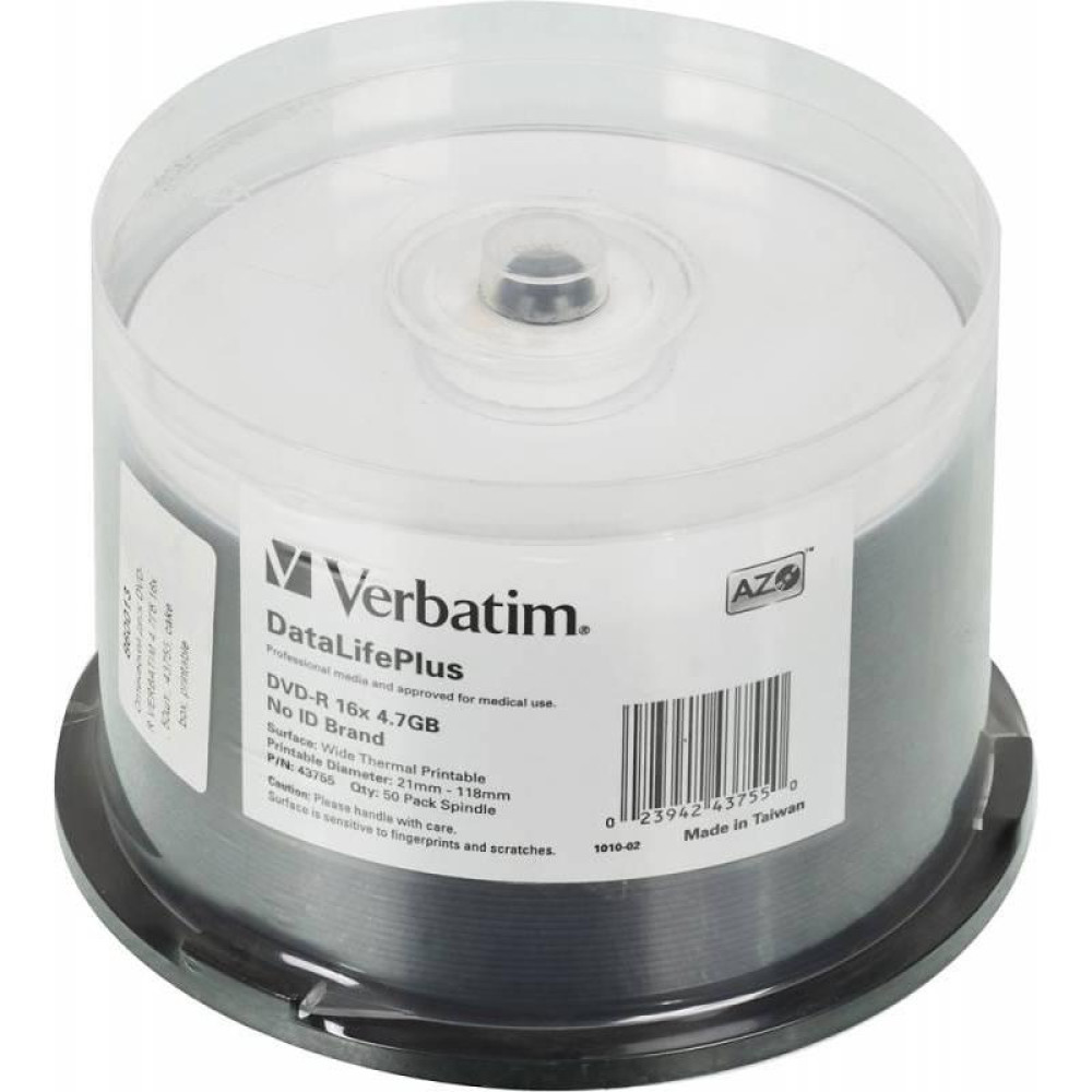 Диск DVD-R Verbatim 4.7Gb 16x Cake Box (50шт) Printable (43755)