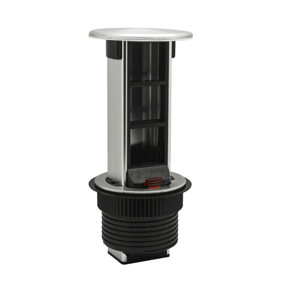 Donel Настольный встраиваемый выдвижной розеточный блок Vertical 6 мод. (3 мод. 45х45), алюминий