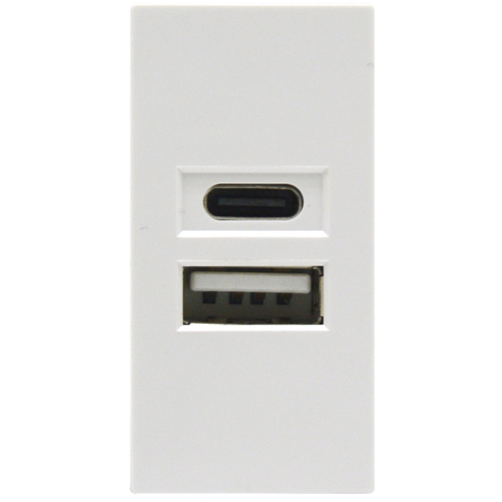 Donel USB зарядное устройство, 2.1A, Type A + C, 1 мод., бел. (22.5х45мм)