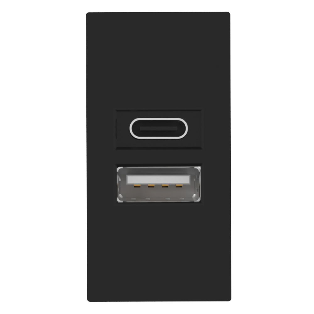 Donel USB зарядное устройство, 2.1A, Type A + C, 1 мод., черн. (22.5х45мм)