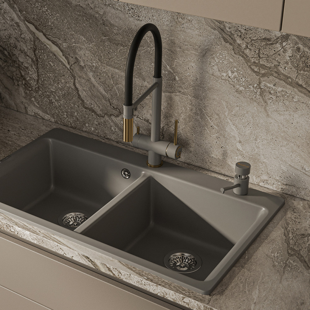 Дозатор RIVELATO, объем емкости для жидкого мыла 500 мл, отверстие для монтажа d-35 мм, цвет серый металлик