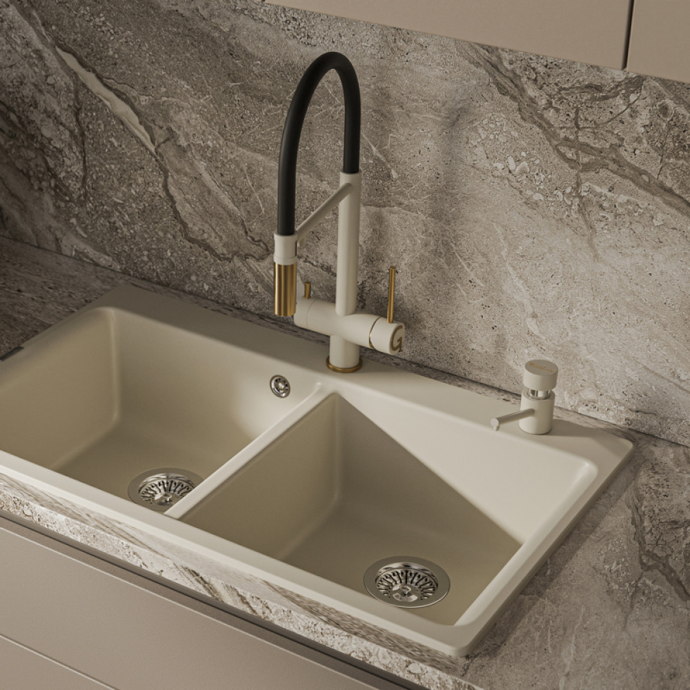 Дозатор RIVELATO, объем емкости для жидкого мыла 500 мл, отверстие для монтажа d-35 мм, цвет темно-бежевый