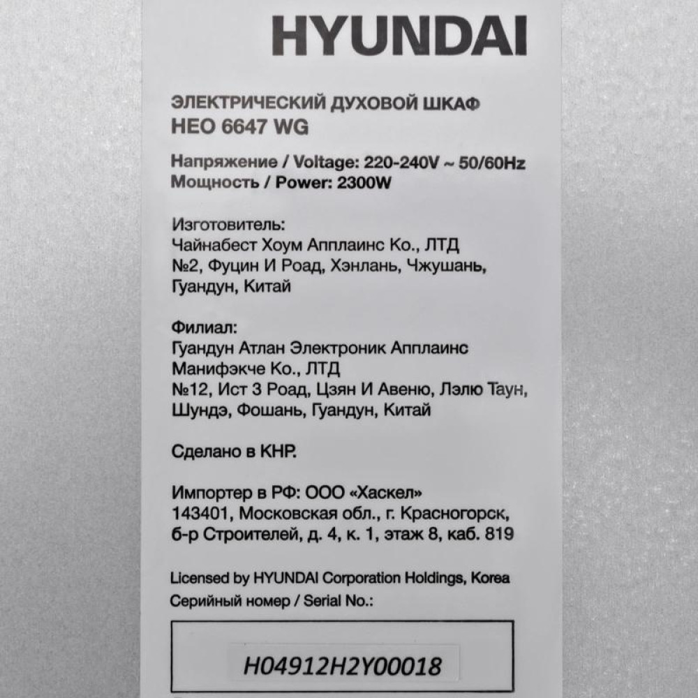Духовой шкаф Электрический/ Духовой шкаф Электрический Hyundai HEO 6647 WG белый