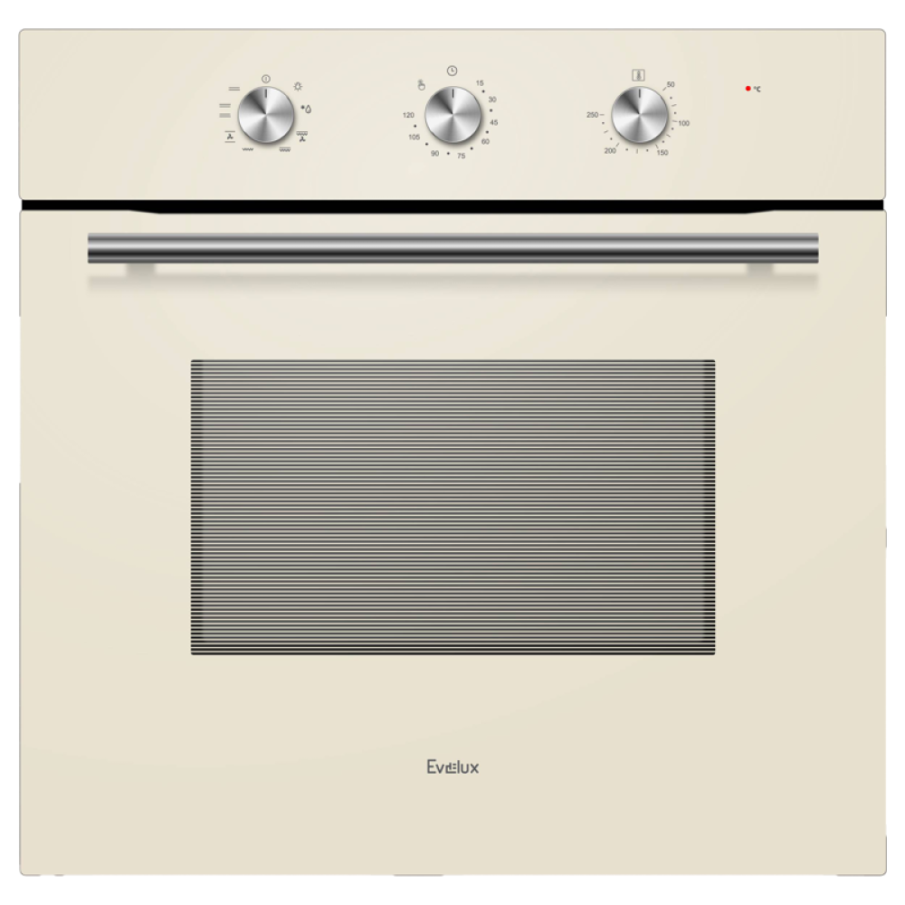 Духовой шкаф встраиваемый полноразмерный, 60 см, 8 режимов, объем духовки 65л, поворотные переключатели, панель управления - бежевое стекло, универсальный противень, решетка-гриль, двойное стекло дверцы, легко-съемное большое внутреннее стекло Full Glass