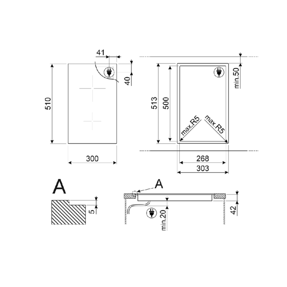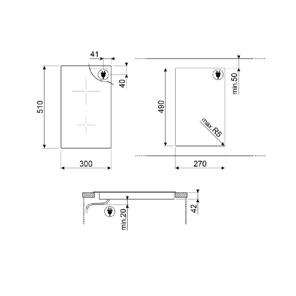 Электрическая домино SMEG/ домино, стеклокерамическая варочная панель, 30 см, прямой край,черная