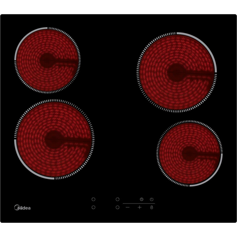 Электрическая варочная поверхность HiLight Midea/ MDK/Электрическая варочная поверхность Hi-Light, ширина 60 см, 4 зоны нагрева HILIGHT, сенсорное управление, 9 уровней мощности, таймер, индикаторы остаточного тепла, функция "Защита детей", стеклокерамика