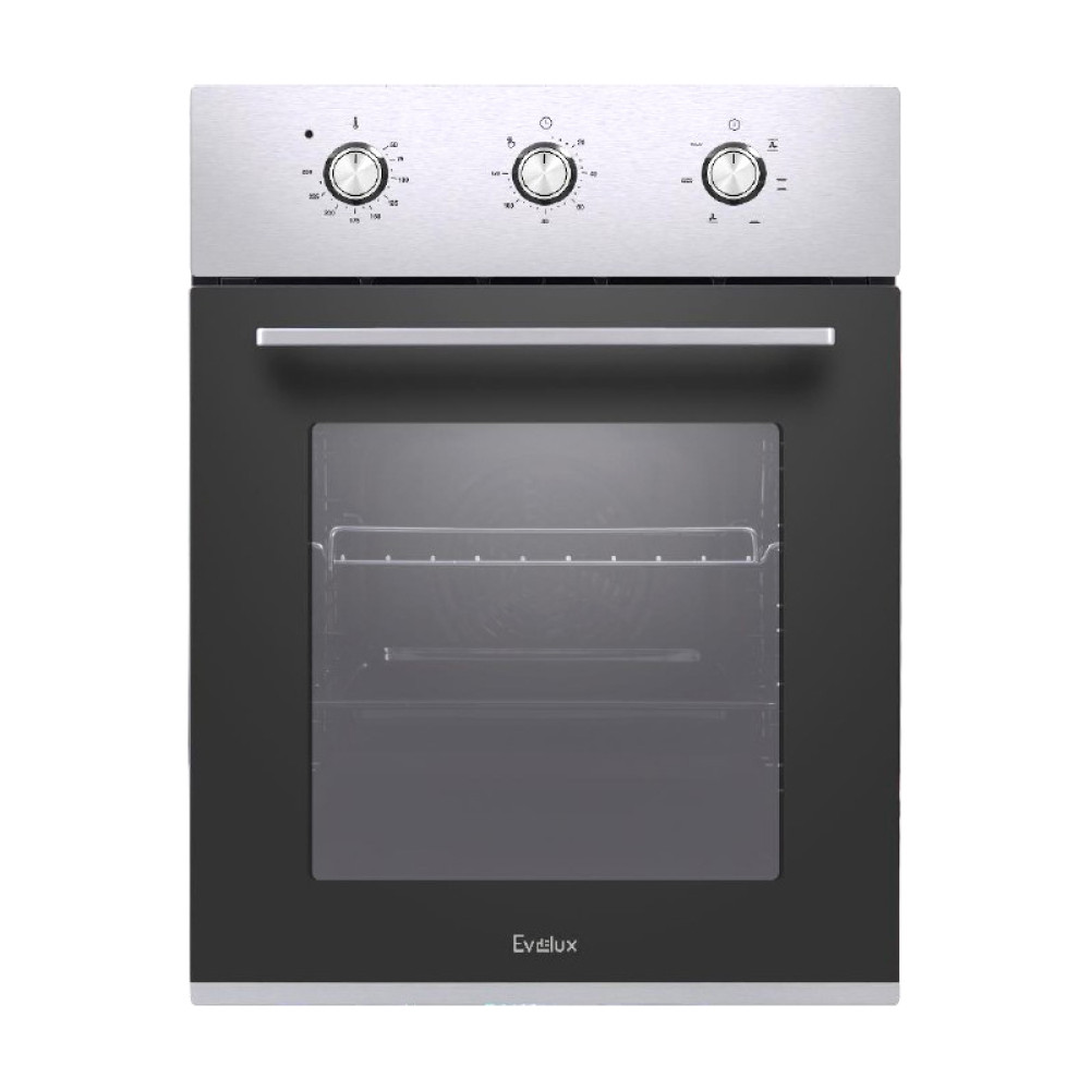 электрический духовой шкаф встраиваемый узкий, 45 см, 6 режимов, объем духовки 50л, утапливаемые переключатели, хромированные боковые решетки, панель управления - нержавеющая сталь Anti-Finger, универсальный противень, решетка-гриль, тройное стекло двер