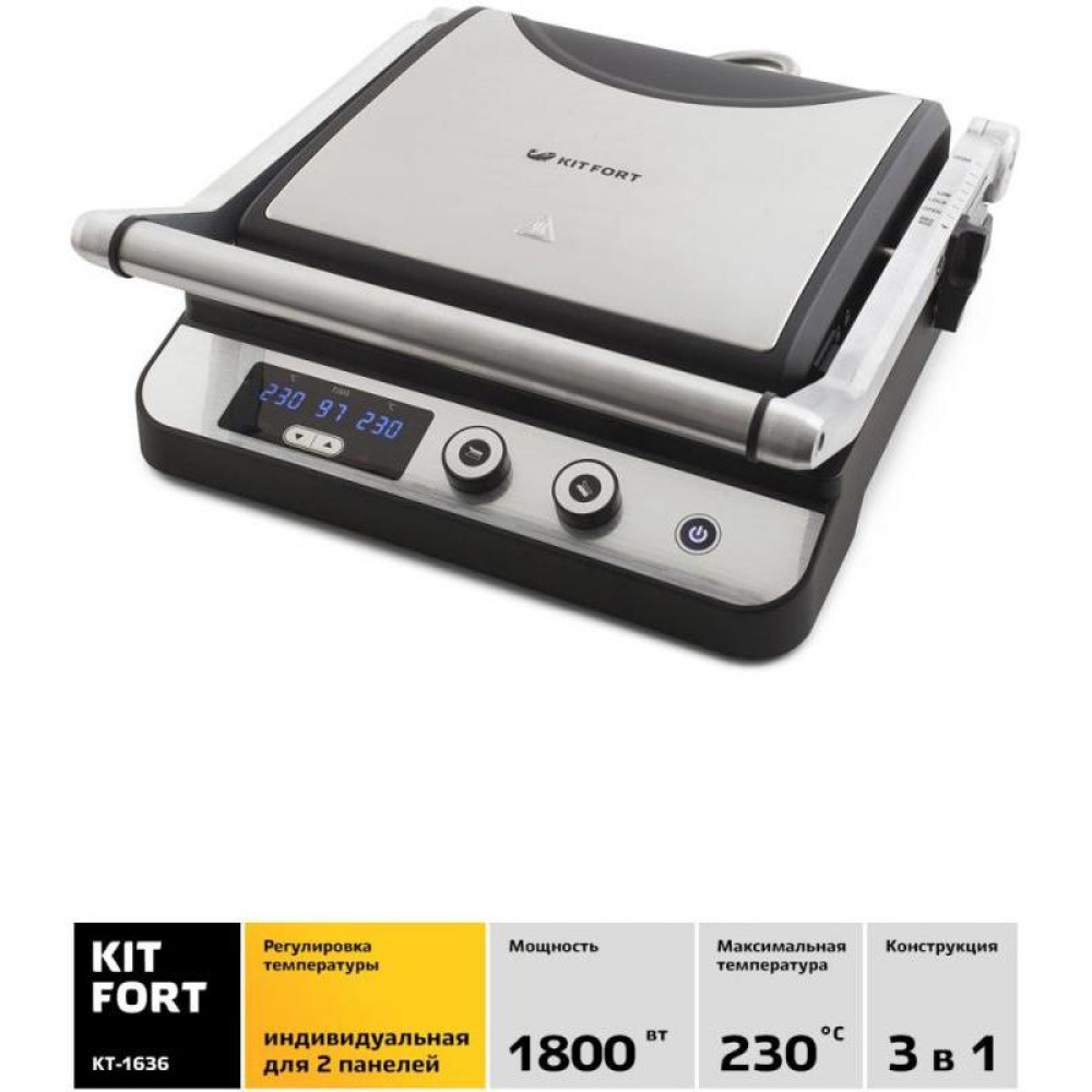 Электрогриль Kitfort КТ-1636 1800Вт серебристый