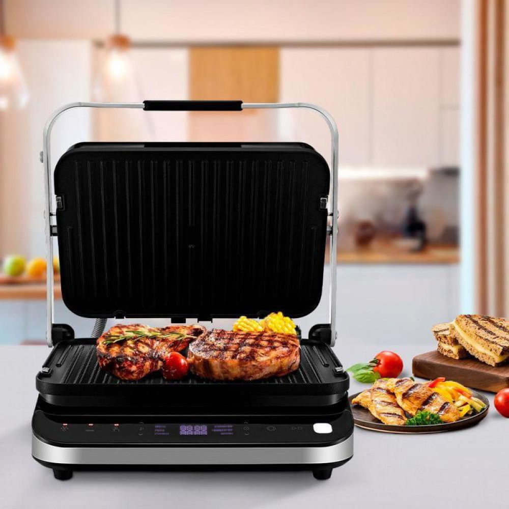 Электрогриль Kitfort КТ-1682 2000Вт черный/серебристый