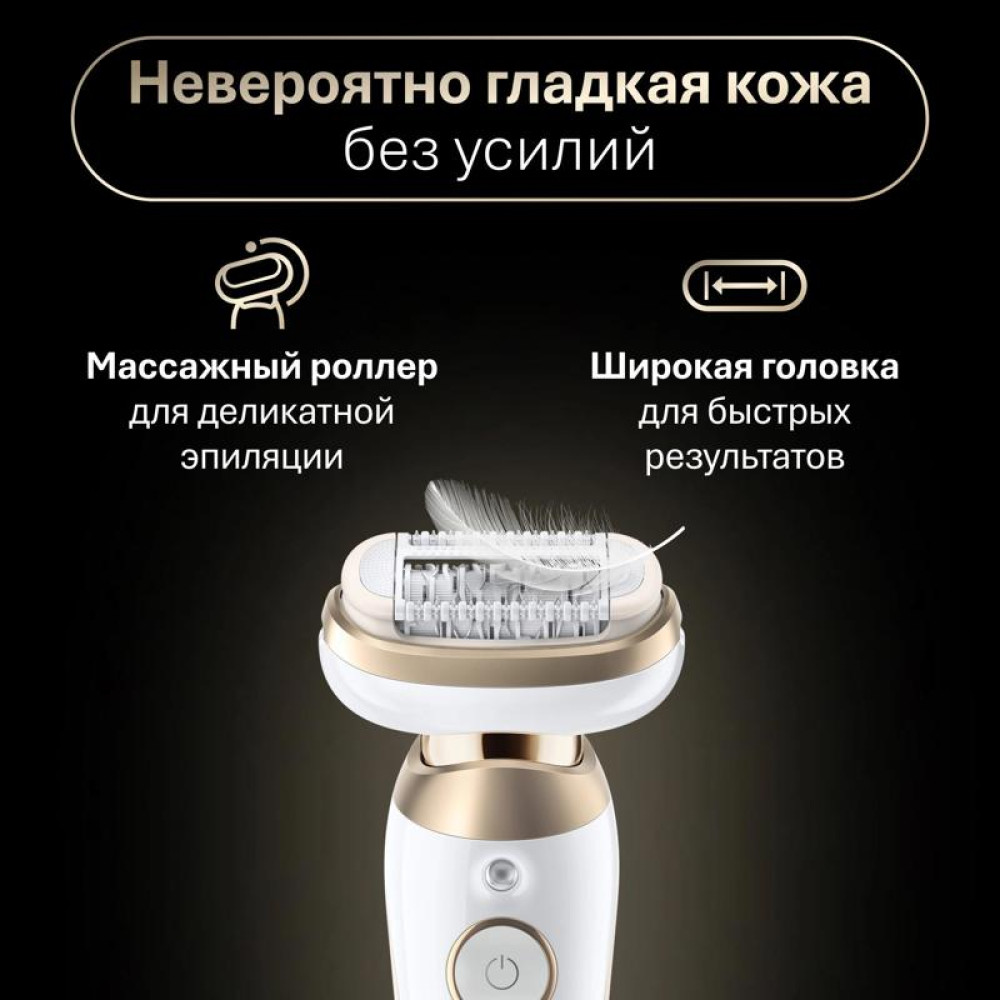 Эпилятор/ Эпилятор Braun SES9-011 скор.:2 насад.:3 от электр.сети от аккум. белый/золотистый