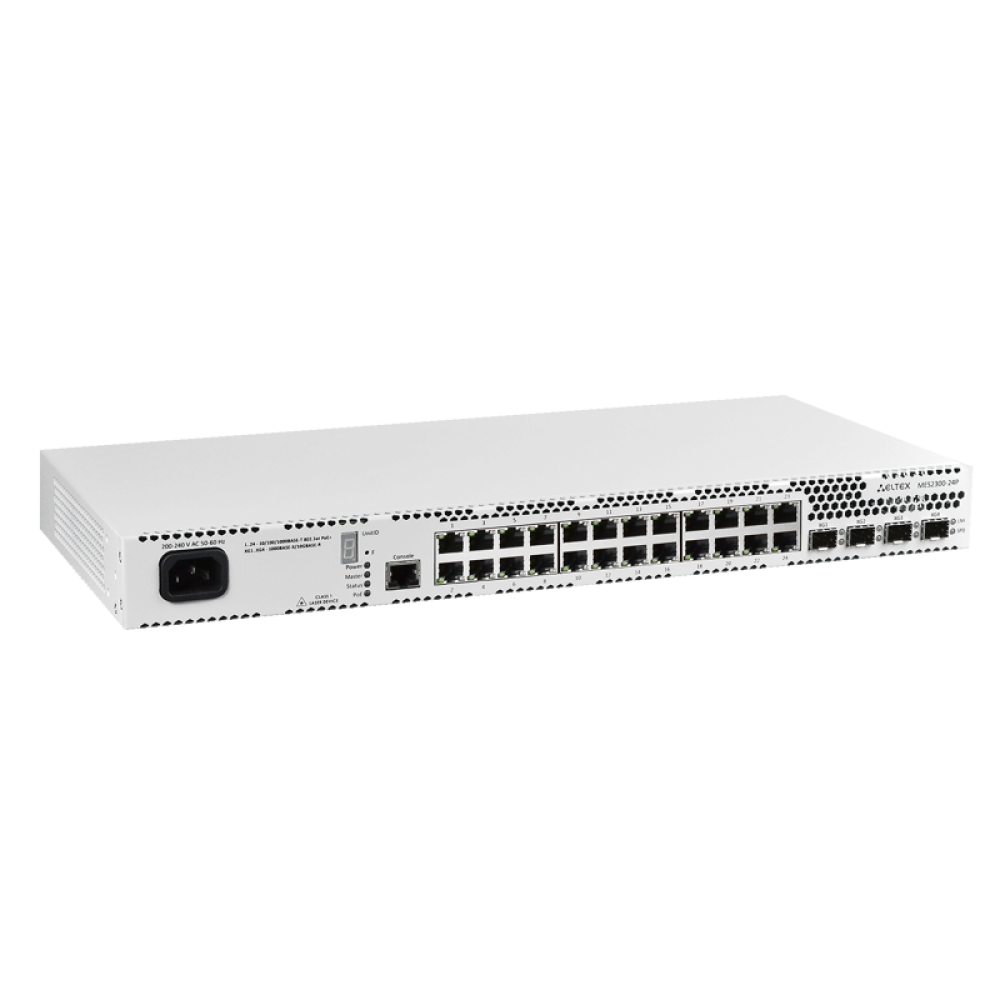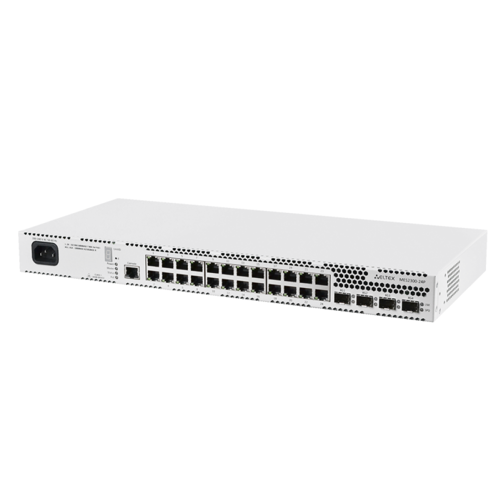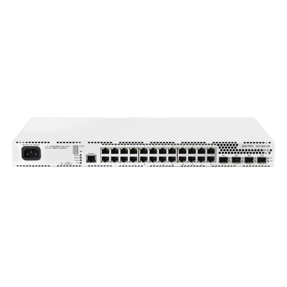 Ethernet-коммутатор MES2300-24P, 24 порта 10/100/1000BASE-T (RJ-45) PoE/PoE+, 4 порта 10GBASE-R (SFP+)/1000BASE-X (SFP), L3