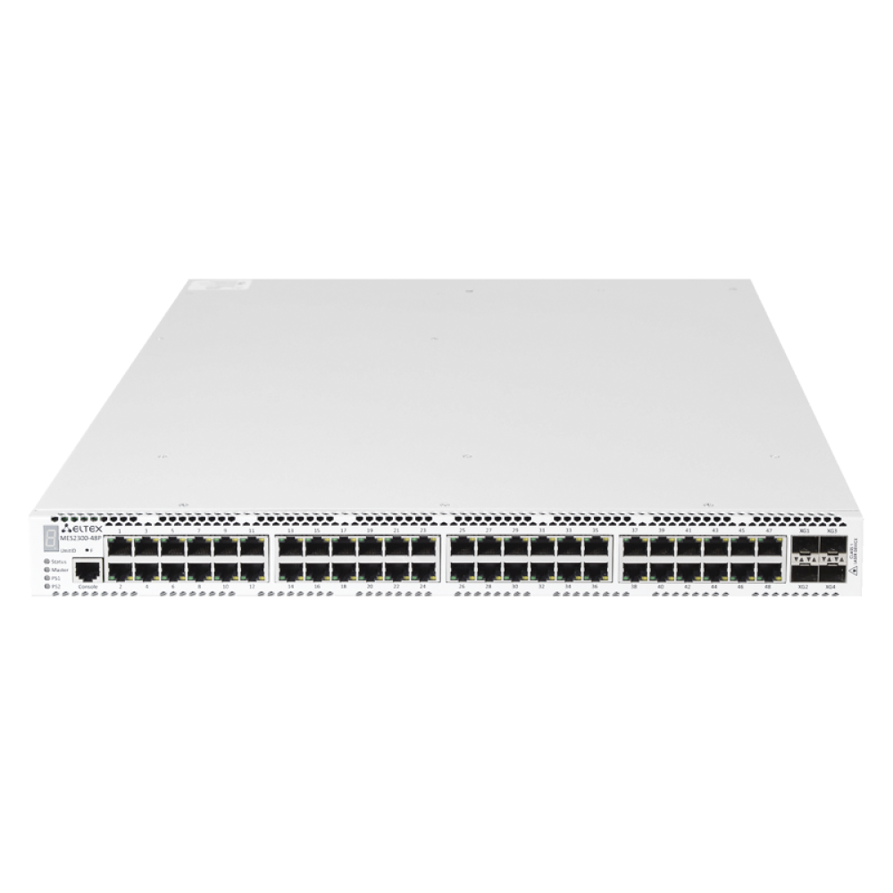 Ethernet-коммутатор MES2300-48P, 48 портов 10/100/1000BASE-T (RJ-45) PoE/PoE+, 4 порта 10GBASE-R (SFP+)/1000BASE-X (SFP), L3, 2 слота для модулей питания