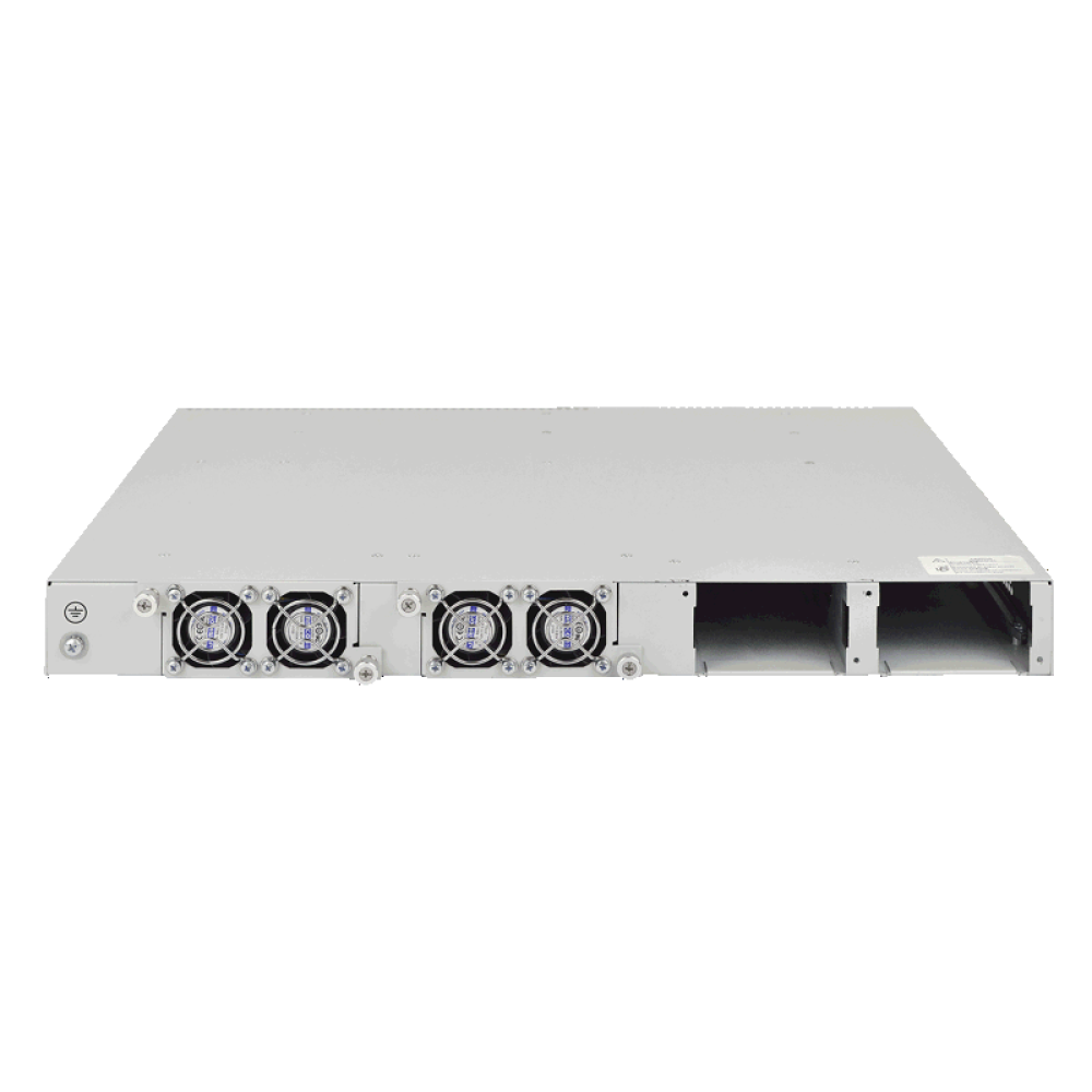 Схема вентиляции front-to-back обеспечивает эффективное охлаждение устройства в условиях эксплуатации в ЦОД. Отказоустойчивость достигается за счет резервирования источников питания (1+1) и сменных модулей вентиляции с возможностью горячей замены. Это позволяет обеспечить непрерывную работу сети без простоев.