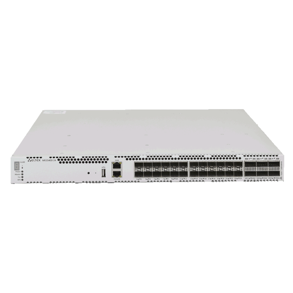 Ethernet-коммутатор MES5400-24, 24x1000BASE-X (SFP)/10GBASE-R (SFP+), 6x40GBASE-R (QSFP+) /100GBASE-R (QSFP28), L3, 2 слота для модулей питания