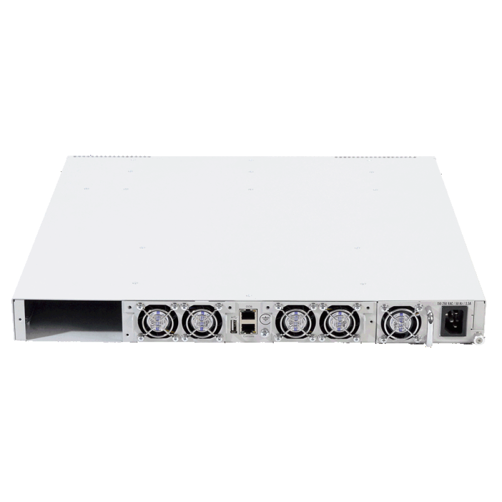 Схема вентиляции front-to-back обеспечивает эффективное охлаждение устройства в условиях эксплуатации в ЦОД. Отказоустойчивость достигается за счет резервирования источников питания (1+1) и сменных модулей вентиляции с возможностью горячей замены. Это позволяет обеспечить непрерывную работу сети без простоев.