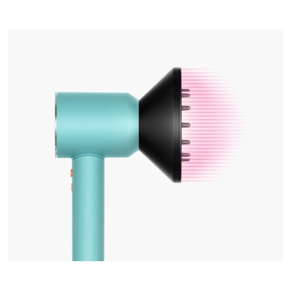 Фен Dyson Supersonic Nural HD16 выполнен в компактном бирюзовом корпусе. Прибор мощностью 1600 Вт удобен для повседневной сушки дома и в салоне, подходит для волос любой длины. Он поддерживает 3 скорости потока воздуха и динамическую регулировку температурного режима в зависимости от потребностей. Благодаря интеллектуальным датчикам прибор запоминает предпочтения пользователя и регулирует нагрев и интенсивность подачи воздуха. При помощи TOF-сенсоров он определяет расстояние до головы и реагирует на изменения, соблюдая параметры режима бережной сушки.Dyson Supersonic Nural HD16 оснащен генератором ионов, что убирает статическое электричество с волос, делает их гладкими. Для подачи холодного воздуха используется отдельная кнопка. Эта функция помогает защитить пряди от потери влаги и пересушивания, делает укладку легкой и гладкой. При создании локонов холодный воздух фиксирует прическу. Благодаря 5 насадкам он будет полезен для парикмахеров и всех, кто любит экспериментировать со своими волосами.В комплекте переходник для евровилки.
