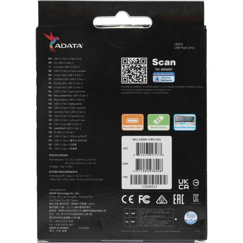 Флеш Диск A-Data 128Gb Type-C UE800 AELI-UE800-128G-CSG USB3.2 серебристый