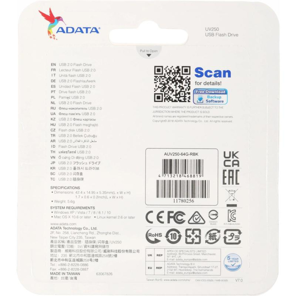 Флеш Диск A-Data 64Gb UV250 AUV250-64G-RBK USB2.0 серебристый