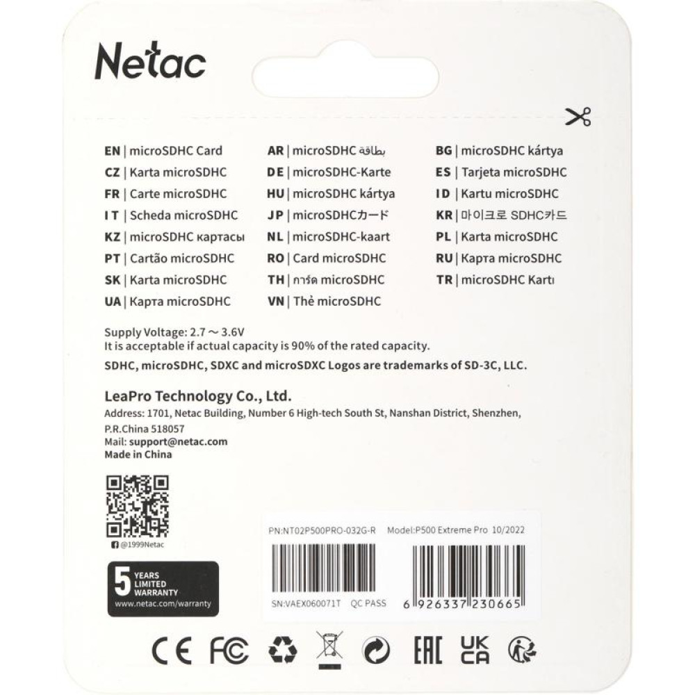 Флеш карта microSDHC 32GB Netac NT02P500PRO-032G-R P500 Extreme Pro + adapter