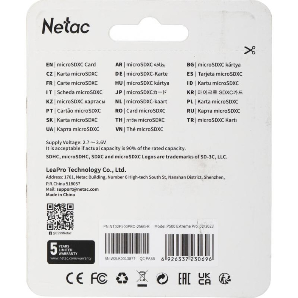 Флеш карта microSDXC 256GB Netac NT02P500PRO-256G-R P500 Extreme Pro + adapter