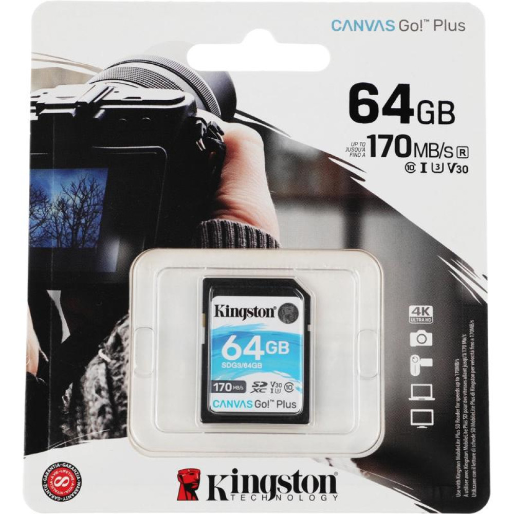 Флеш карта SDXC 64GB Kingston SDG3/64GB Canvas Go! Plus w/o adapter