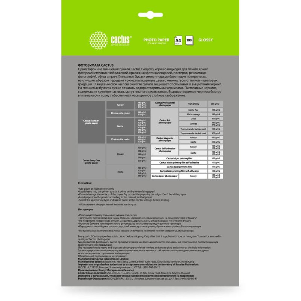 Фотобумага Cactus CS-GA4150100ED A4/150г/м2/100л./белый глянцевое для струйной печати
