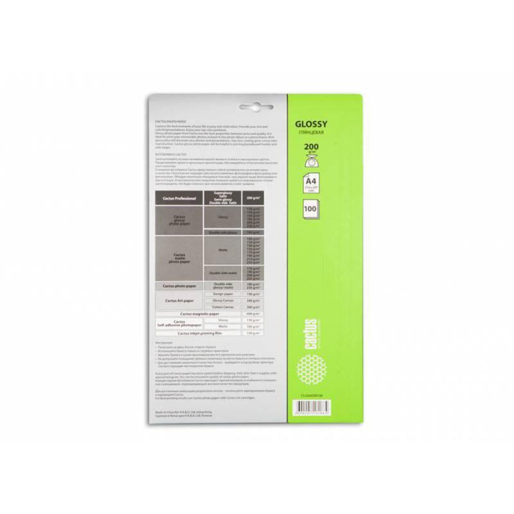 Фотобумага Cactus CS-GA4200100 A4/200г/м2/100л./белый глянцевое для струйной печати