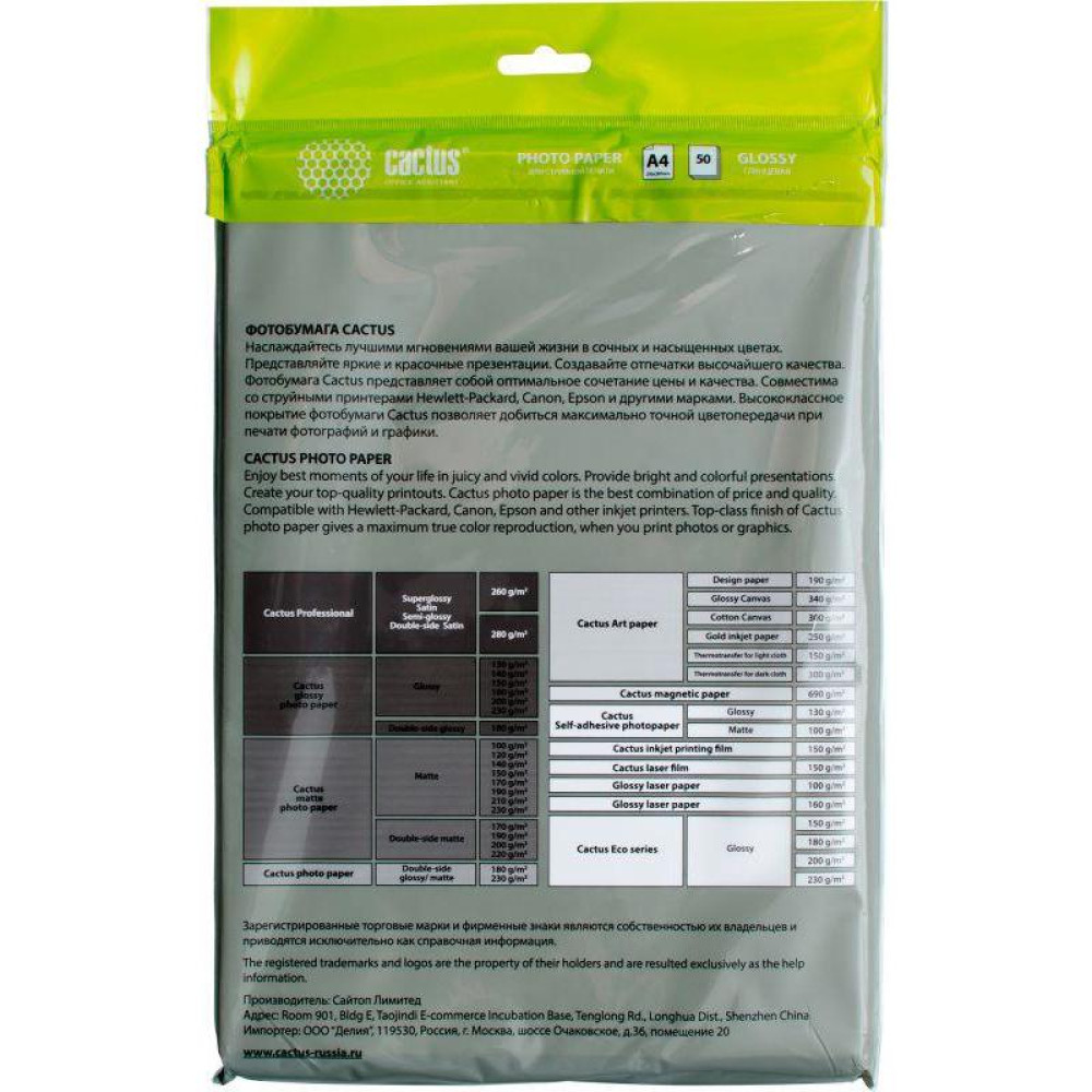 Фотобумага Cactus CS-GA420050ED A4/200г/м2/50л./белый глянцевое для струйной печати