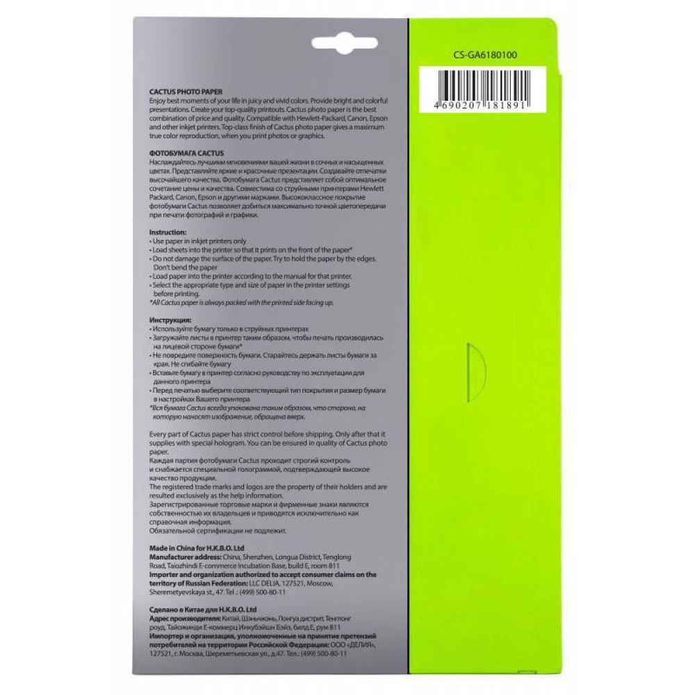 Фотобумага Cactus CS-GA6180100 10x15/180г/м2/100л./белый глянцевое для струйной печати