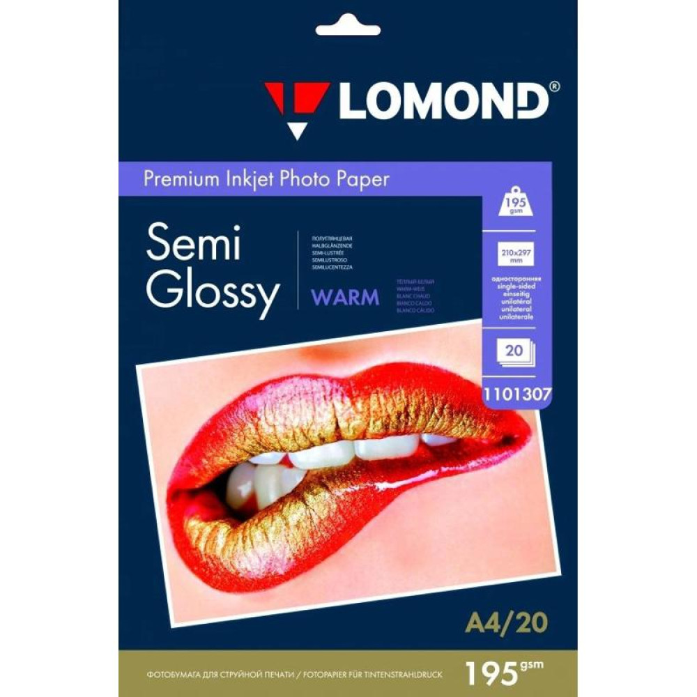 Фотобумага Lomond 1101307 A4/195г/м2/20л./тепло-белый полуглянцевое для струйной печати