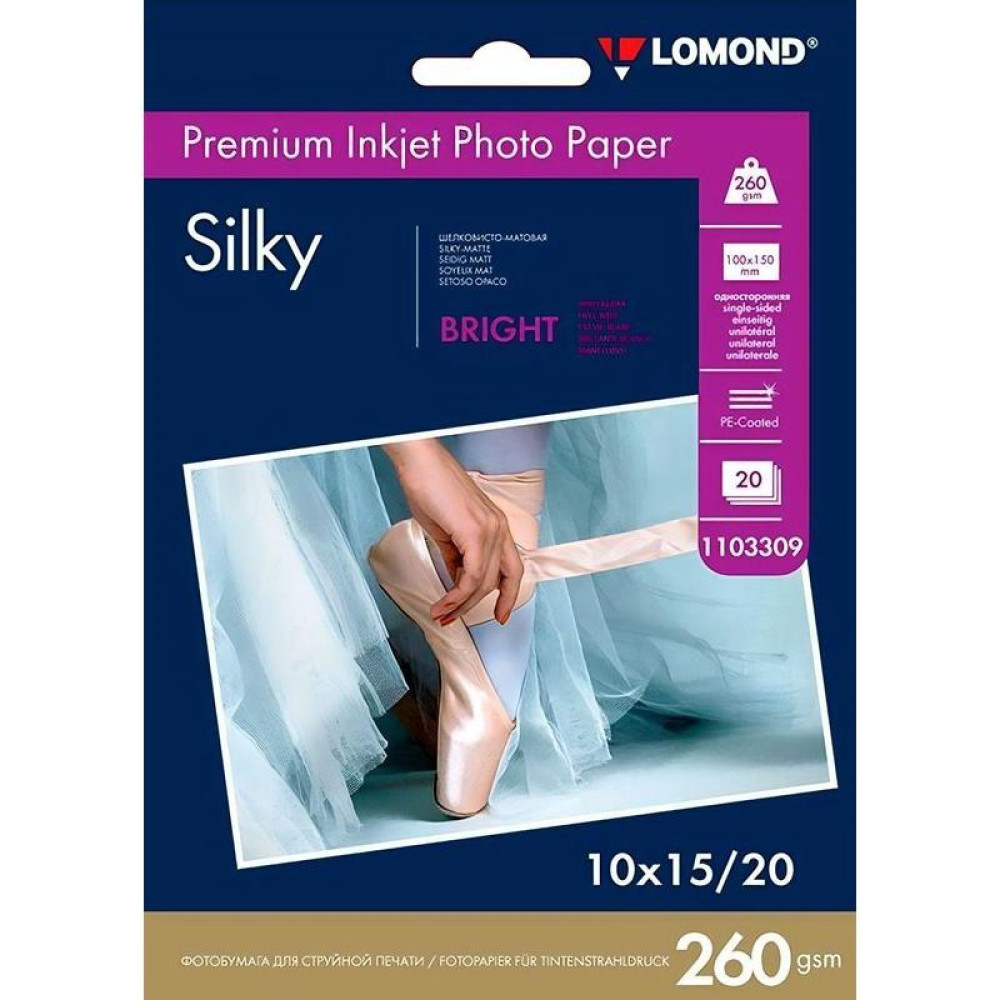 Фотобумага Lomond 1103309 10x15/260г/м2/20л./ярко-белый атласная для струйной печати