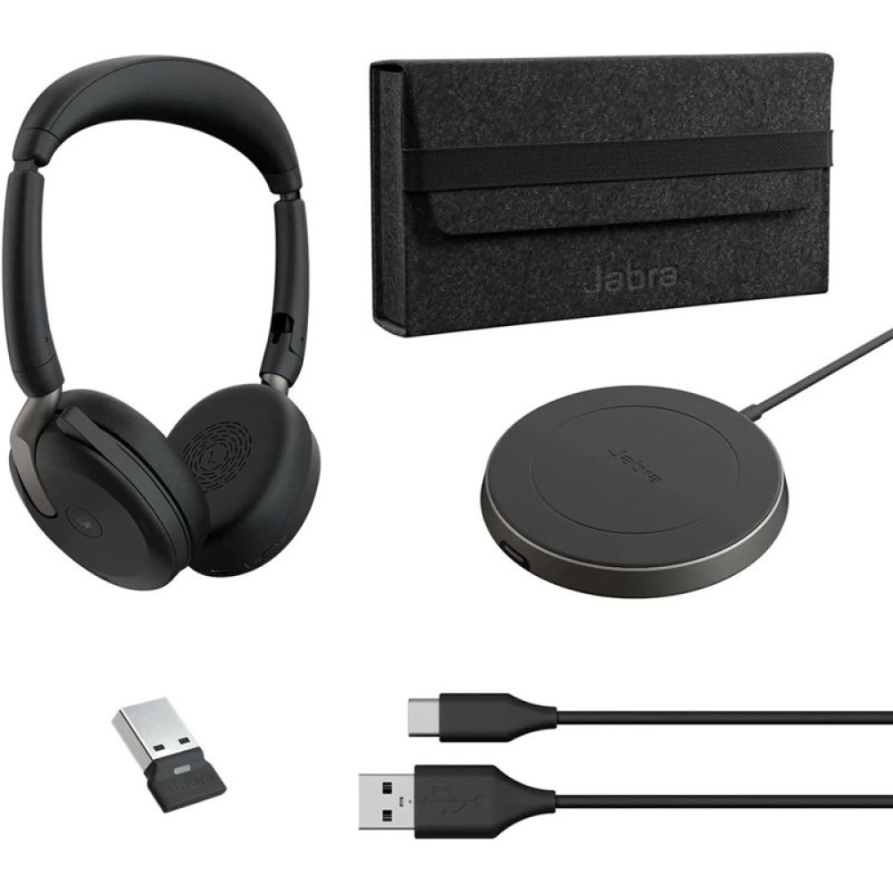 В набор входит док-станция для беспроводной зарядки, USB-C/USB-A кабель и мягкий чехол для хранения. Гарнитура полностью совместима с Microsoft Teams и поддерживает современные стандарты защиты слуха.