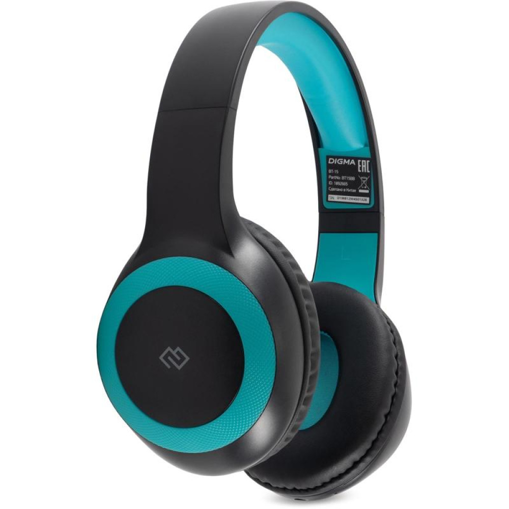 Гарнитура накладные Digma BT-15 черный/голубой беспроводные bluetooth оголовье (BT-15BLB)