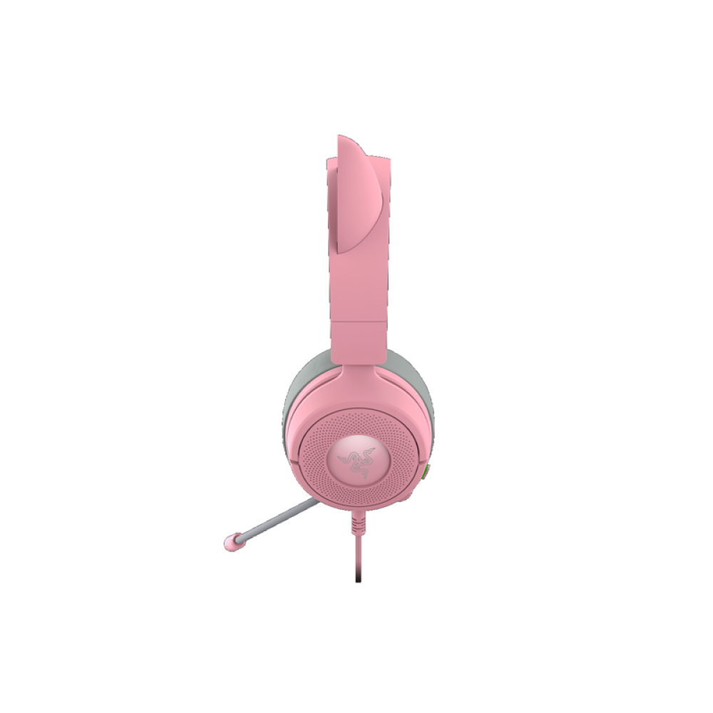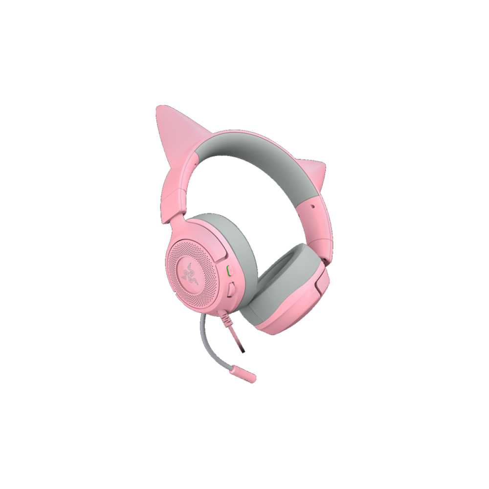 Гарнитура выполнена в розовом цвете Quartz и оснащена фирменными «кошачьими ушками» с настраиваемой Razer Chroma RGB-подсветкой. Лёгкий корпус, мягкие амбушюры и удобное оголовье обеспечивают комфортное использование в течение многих часов.